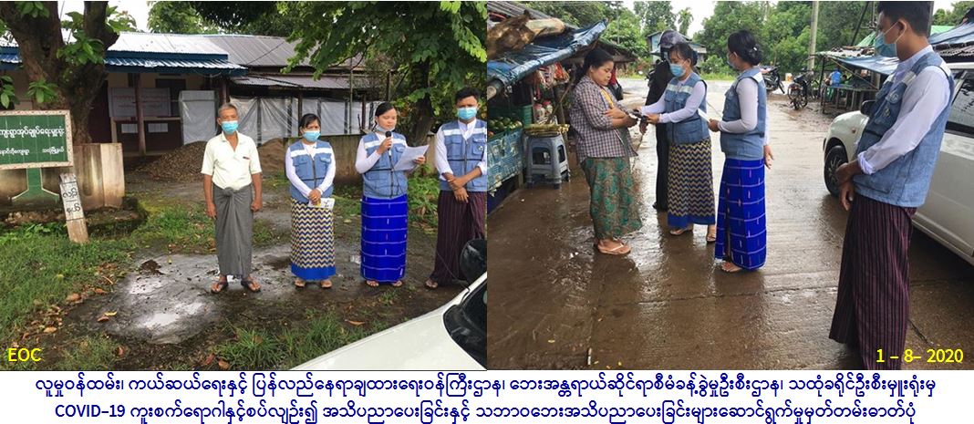 လူမှုဝန်ထမ်း၊ ကယ်ဆယ်ရေးနှင့် ပြန်လည်နေရာချထားရေး ဝန်ကြီးဌာန၊ ဘေးအန္တရာယ်ဆိုင်ရာစီမံခန့်ခွဲမှုဉီးစီးဌာန၊ သထုံခရိုင် ဦးစီးမှူးရုံးမှ တာဝန်ရှိသူများသည် (၂-၈-၂၀၂၀) ရက်နေ့၊ (၀၉:၀၀)နာရီအချိန်မှ (၁၃:၀၀) နာရီအချိန်ထိ မွန်ပြည်နယ်၊ သထုံခရိုင် သထုံမြို့နယ်၊ ဇရစ်ချောင်ကျေးရွာနှင့် နောင်ဘိုကျေးရွာတို့တွင် Covid-19 ရောဂါကူးစက်ပျံ့နှံ့မှုများ မဖြစ်ပွားစေရေးနှင့် မိုးရာသီ ကာလအတွင်းဖြစ်ပွားလေ့ရှိသည့် မိုးကြိုးဘေး၊ မုန်တိုင်းဘေး၊ ရေဘေး၊ မြေပြိုဘေးအန္တရာယ်များ ကြိုတင်ပြင်ဆင်ရေး အသိပညာပေးဟောပြောခြင်းအား အသံချဲ့စက်များဖြင့်လည်းကောင်း၊ ရေဘေးအန္တရာယ်ကြိုတင် ကာကွယ်ရေးပြည်သူသို့ အသိပေးနှိုးဆော်ခြင်းအား Handspeaker များဖြင့်လည်းကောင်း အသိပေးနှိုးဆော်ကြေငြာခဲ့ပြီး လက်ကမ်း စာစောင်ဖြန့်ဝေခြင်း တို့အားဆောင်ရွက်ခဲ့ပါကြောင်း သတင်းရရှိပါသည်။