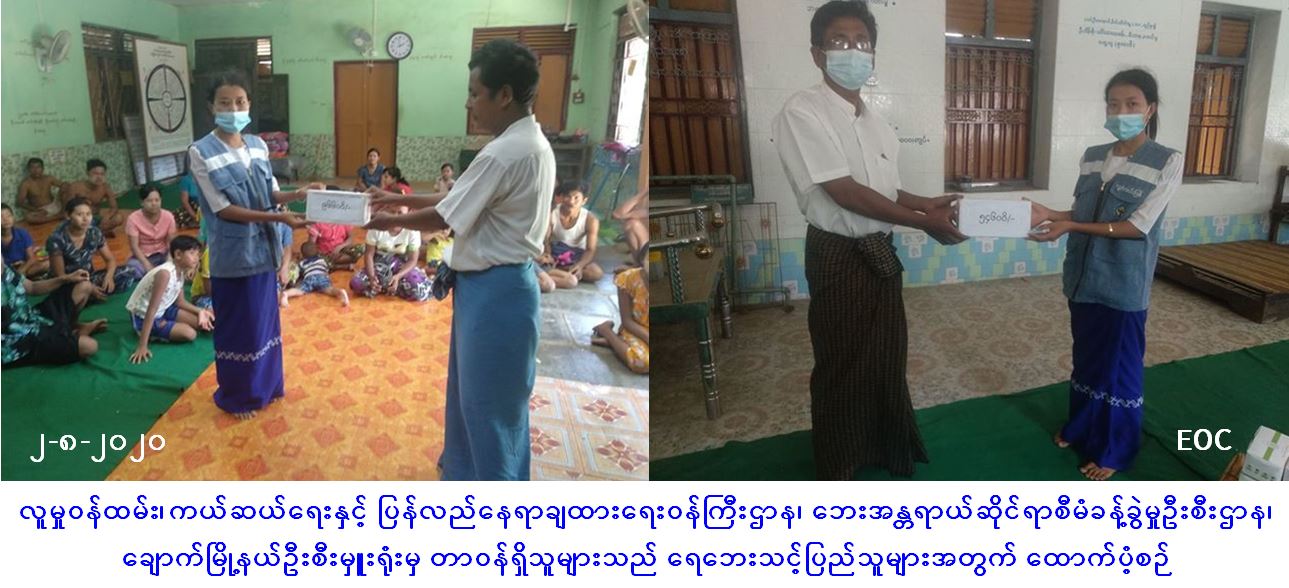 လူမှုဝန်ထမ်း၊ ကယ်ဆယ်ရေးနှင့် ပြန်လည်နေရာချထားရေးဝန်ကြီးဌာန၊ ဘေးအန္တရာယ်ဆိုင်ရာစီမံခန့်ခွဲမှုဦးစီးဌာန၊ ချောက်မြို့နယ်ဦးစီးမှူးရုံးမှ တာဝန်ရှိသူများသည် ချောက်မြို့နယ်၊ အမှတ်(၂)ရပ်ကွက်၊ လေဘာဆိပ်ရပ်၊ အမှတ်(၇)ရပ်ကွက်၊ အုတ်ဖိုရပ်နှင့် ရွာဟောင်းရပ်တို့၌ (၁-၈-၂၀၂၀) ရက်နေ့တွင် ဧရာဝတီမြစ်ရေမြင့်တက်လာမှုကြောင့် ရေဘေးသင့်ခဲ့သည့် အိမ်ထောင်စု (၁၃)စု၊ လူဦးရေ (၇၂)ဦးတို့အတွက် ဆန်ရိက္ခာဖိုးထောက်ပံ့ငွေ (၁၅၁၂၀ဝိ/-) ကျပ်တို့အား (၂-၈-၂၀၂၀) ရက်နေ့၊ (၁၄:၀၀) နာရီအချိန်တွင် သက်ဆိုင်ရာကျေးရွာအုပ်ချုပ်ရေးမှူး၊ တာဝန်ရှိသူများနှင့်အတူ ဘေးသင့်ပြည်သူများထံသို့ ထောက်ပံ့ပေးအပ်ခဲ့ကြောင်း သိရှိရပါသည်။