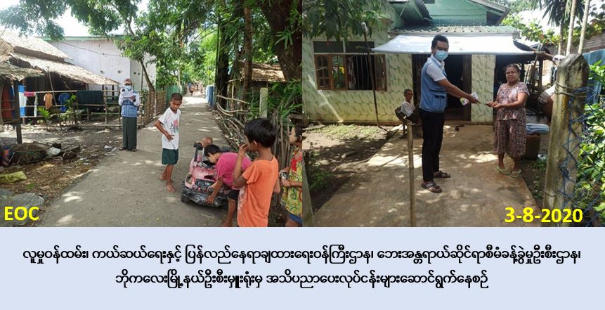 လူမှုဝန်ထမ်း၊ ကယ်ဆယ်ရေးနှင့်ပြန်လည်နေရာချထားရေးဝန်ကြီးဌာန၊ ဘေးအန္တရာယ်ဆိုင်ရာ စီမံခန့်ခွဲမှုဦးစီးဌာန၊ ဘိုကလေးမြို့နယ်ဦးစီးမှူးရုံးမှ တာဝန်ရှိသူများသည် (၃-၈-၂၀၂၀)ရက်နေ့၌ ဘိုကလေးမြို့နယ်၊ သပြုကုန်းကျေးရွာအုပ်စု၊ သပြုကုန်းကျေးရွာတွင် (၁၀:၀၀) နာရီအချိန်၌ လည်းကောင်း၊ ကျောင်းချောင်းကျေးရွာတွင် (၁၀:၃၀)နာရီအချိန်၌လည်းကောင်း၊ ကျွန်းကလေး ကျေးရွာတွင် (၁၁:၀၀)နာရီအချိန်၌လည်းကောင်း၊ ရန်ကင်းစုကျေးရွာတွင် (၁၁:၃၀)နာရီအချိန်၌ လည်းကောင်း ကျန်းမာရေးနှင့်အားကစားဝန်ကြီးဌာနမှ ထုတ်ပြန်ထားသော Covid-19 ကူးစက်မှု ဒုတိယလှိုင်းမဖြစ်စေရန် အသိပညာပေးခြင်းလုပ်ငန်းများနှင့် ဧရာဝတီတိုင်းဒေသကြီး Covid -19 ထိန်းချုပ်ရေးနှင့် အရေးပေါ်တုံ့ပြန်ရေးကော်မတီမှ (၁၄-၇-၂၀၂၀)ရက်နေ့အထိ ထုတ်ပြန်ပြီး ဖြစ်သည့် တားမြစ်မိန့်နှင့် ညွန်ကြားချက်အားလည်းကောင်း၊ ရာသီအလိုက်ဖြစ်ပွားတတ်သော သဘာဝဘေးများအန္တရာယ်များနှင့် ပတ်သက်သည့် သဘာဝဘေးအသိပညာပေး ခြင်းတို့အား လည်းကောင်း၊ အများပြည်သူများသိရှိလိုက်နာရန် ကွင်းဆင်းလှည့်လှည်၍ အသိပညာပေး လုပ်ငန်းများ ပြုလုပ်ဆောင်ရွက်ခဲ့ကြောင်း သတင်းရရှိပါသည်။