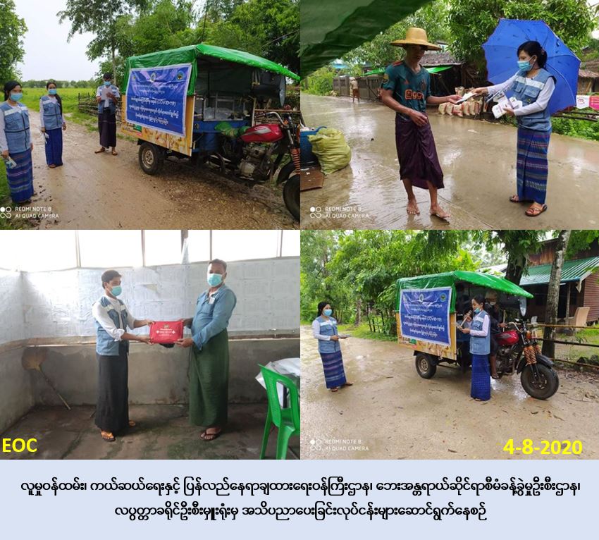 လူမှုဝန်ထမ်း၊ ကယ်ဆယ်ရေးနှင့် ပြန်လည်နေရာချထားရေးဝန်ကြီးဌာန၊ ဘေးအန္တရာယ်ဆိုင်ရာ စီမံခန့်ခွဲမှုဦးစီးဌာန၊ လပွတ္တာခရိုင်ဦးစီးမှူးရုံးမှ တာဝန်ရှိသူများသည် အထွေထွေအုပ်ချုပ်ရေး ဦးစီးဌာနနှင့် အတူပူးပေါင်း၍ (၄-၈-၂၀၂၀)ရက်နေ့၊ (၀၈:၃၀) နာရီအချိန်မှ(၁၂:၀၀)နာရီအချိန်ထိ လပွတ္တာမြို့နယ်၊ ကျောက်မှော်ကျေးရွာအုပ်စု၊ ကျောက်မှော်ကျေးရွာ၊ အောက်ချောင်းကျေးရွာ၊ သဲကုန်းကျေးရွာ၊ လေးအိမ်တန်းကျေးရွာ၊ သရက်ကုန်းကျေးရွာနှင့် လေးဆိပ်ကျေးရွာများတို့တွင် (ဒုတိယအကြိမ်) Covid-19 အသက်ရှူလမ်းကြောင်းဆိုင်ရာရောဂါနှင့် ပတ်သက်၍ ကျန်းမာရေး နှင့်အားကစား၀န်ကြီးဌာနမှ ထုတ်ပြန်ထားသည့် အသိပေးကြေညာချက်များ၊ သဘာဝဘေး အန္တရာယ်ဆိုင်ရာအသိပညာပေးခြင်းများကို အများပြည်သူများသိရှိလိုက်နာရန် ကွင်းဆင်း၍ Loud Speaker ဖြင့် လှည့်လှည်ဆောင်ရွက်ခဲ့ပြီး လက်ကမ်းစာစောင်များ၊ ဗွီနိုင်းများနှင့် First Aid Kit ဝေငှခြင်းများကို ပြုလုပ်ဆောင်ရွက်ခဲ့ကြောင်း သတင်းရရှိပါသည်။