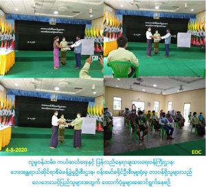 လူမှုဝန်ထမ်း၊ ကယ်ဆယ်ရေးနှင့် ပြန်လည်နေရာချထားရေးဝန်ကြီးဌာန၊ ဘေးအန္တရာယ်ဆိုင်ရာစီမံခန့်ခွဲမှုဦးစီးဌာန၊ ဗန်းမော်ခရိုင်ဦးစီးမှူးရုံးမှ တာဝန်ရှိသူများသည် (၃-၈-၂၀၂၀) ရက်နေ့တွင် ဗန်းမော်ခရိုင်၊ မိုးမောက်မြို့နယ်၊ ဒေါ့ဖုန်းယန်မြို့၌ တိုက်ခတ်သော လေပြင်းဘေးကြောင့် တစ်စိတ်တစ်ပိုင်းပျက်စီး အိမ်ထောင်စု(၁၈)စုအတွက် အိမ်ဆောက်ပစ္စည်းဖိုးထောက်ပံ့ ငွေ(၁၆၇၅၀၀၀/-)ကျပ်နှင့် လူဦးရေ(၉၆)ဦးအတွက် ဆန်ရိက္ခာ(၇)ရက်စာဖိုးထောက်ပံ့ငွေ(၂၀၁၆၀၀/-)ကျပ် စုစုပေါင်း ထောက်ပံ့ငွေ(၁၈၇၆၆၀၀/-)ကျပ်တို့ကို (၄-၈-၂၀၂၀)ရက်နေ့ (၁၃:၃၀)နာရီအချိန်တွင် ဘေးသင့်ပြည်သူထံသို့ သွားရောက် ထောက်ပံ့ခဲ့ကြောင်း သတင်းရရှိပါသည်။