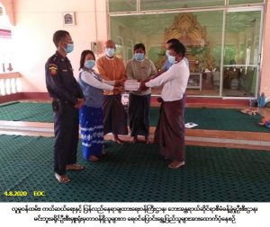 လူမှုဝန်ထမ်း၊ ကယ်ဆယ်ရေးနှင့် ပြန်လည်နေရာချထားရေးဝန်ကြီးဌာန၊ ဘေးအန္တရာယ်ဆိုင်ရာစီမံခန့်ခွဲမှုဦးစီး ဌာန၊ မင်းဘူးခရိုင်ဦးစီးမှူးရုံးမှတာဝန်ရှိသူများသည် မင်းဘူးခရိုင်၊ မင်းဘူး(စကု)မြို့နယ်၊ မင်းဘူးမြို့၊ ရပ်ကွက်(၃)ခုနှင့် ကျေးရွာ(၉)ရွာတို့၌ (၂၉-၇-၂၀၂၀) ရက်နေ့မှ (၂၈-၇-၂၀၂၀)ရက်နေ့အထိ ဖြစ်ပွားခဲ့သော ဧရာဝတီမြစ်ရေမြင့်တက်မှုကြောင့် ရေဝင်ပြောင်းရွှေ့အိမ်ခြေ(၅၄၁)လုံး၊ အိမ်ထောင်စု (၅၄၁)စုမှ လူဦးရေ (၁၇၈၀)ဦးတို့အတွက် ဆန်ရိက္ခာ(၇)ရက်စာဖိုးထောက်ပံ့ငွေ (၃,၇၃၈,၀၀၀/-)ကျပ်ကို (၄-၈-၂၀၂၀)ရက်နေ့၊ (၁၄:၀၀) နာရီအချိန်တွင် တိုင်းဒေသကြီးလွှတ်တော်ကိုယ်စားလှယ်၊ မြို့နယ်အုပ်ချုပ်ရေးမှူးတို့နှင့်အတူ ဘေးသင့်ပြည်သူများထံသို့ လက်ဝယ်အရောက် ထောက်ပံ့ပေးအပ်ခဲ့ပါကြောင်း သတင်းရရှိပါသည်။