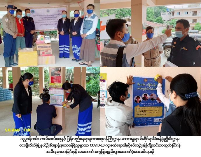 လူမှုဝန်ထမ်း၊ ကယ်ဆယ်ရေးနှင့် ပြန်လည်နေရာချထားရေးဝန်ကြီးဌာန၊ ဘေးအန္တရာယ်ဆိုင်ရာစီမံခန့်ခွဲမှုဦးစီး ဌာန၊ တာချီလိတ်မြို့နယ်ဦးစီးမှူးရုံးမှတာဝန်ရှိသူများသည် Irrawaddy Green Towers Ltd. နှင့် ပူးပေါင်း၍ (၅-၈-၂၀၂၀) ရက်နေ့တွင် တာချီလိတ်မြို့၊ မိုးကုတ်ရိပ်သာ (Quarantine Center) ၌ COVID-19 ကူးစက်ရောဂါနှင့်စပ်လျဉ်း၍ ကြိုတင်ကာကွယ်နိုင်ရန် အထောက်အကူပြုပစ္စည်းများကို ထောက်ပံ့ပေးအပ်ခဲ့ပြီး အသိပညာပေးဗီနိုင်းများ၊ နံရံကပ်ပိုစတာများ ကပ်ခြင်းတို့ ဆောင်ရွက်ခဲ့ပါကြောင်း သတင်းရရှိပါသည်။
