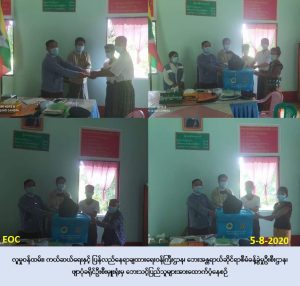 လူမှုဝန်ထမ်း၊ ကယ်ဆယ်ရေးနှင့် ပြန်လည်နေရာချထားရေးဝန်ကြီးဌာန၊ ဘေးအန္တရာယ်ဆိုင်ရာ စီမံခန့်ခွဲမှုဉီးစီးဌာန၊ ဖျာပုံခရိုင်ဦးစီးမှူးရုံးမှ တာဝန်ရှိသူများသည်(၃-၈-၂၀၂၀) ရက်နေ့၊ (၁၇:၀၀)နာရီအချိန်တွင် ဖျာပုံမြို့နယ်၊ အမာမြို့၊ ဘဝသစ်ကျေးရွာအုပ်စု၊ ဂေါ်ဒူကျေးရွာ၌ မိုးသက်လေပြင်းတိုက်ခတ်၍ ပြိုကျပျက်စီးခဲ့သော နေအိမ်(၁)လုံး၊ အိမ်ထောင်စု(၁)စု၊ လူဦးရေ(၇)ဦးတို့အတွက် အိမ်ဆောက်ပစ္စည်းဖိုးထောက်ပံ့ငွေ (၁၀၀,၀၀ဝ/-)ကျပ်၊ ဆန်ရိက္ခာဖိုး ထောက်ပံ့ငွေ (၁၄,၇၀ဝ/-)ကျပ်၊ ကယ်ဆယ်ရေးပစ္စည်း (၁၆)မျိုးနှင့် ASA kid(၁)စုံ တို့အားလည်းကောင်း၊ (၃-၈-၂၀၂၀) ရက်နေ့၊ (၁၃:၃၀) အချိန်၌ ပင်လယ်ဒီရေမြင့်တက်၍ ဒီရေလှိုင်းတိုက်ခတ်မှုကြောင့် ဂေါ်ဒူကျေးရွာမှလူနေအိမ် (၉)လုံးပြိုကျပျက်စီးခဲ့ရာ အိမ်ဆောက် ပစ္စည်းဖိုးထောက်ပံ့ငွေ (၉၀၀,၀၀ဝ/-)ကျပ်၊ အိမ်ထောင်စု(၉)စုမှ လူဦးရေ(၂၇)ဦးတို့အတွက် ဆန်ရိက္ခာဖိုးထောက်ပံ့ငွေ (၅၆,၇၀ဝ/-)ကျပ်၊ ကယ်ဆယ်ရေးပစ္စည်း(၁၆)မျိုး အိမ်ထောင်စု(၉)စုစာ၊ ASA kid (၉)စုံ နှင့် စုစုပေါင်းထောက်ပံ့ငွေ (၁,၀၇၁,၄၀ဝ/-)ကျပ်တို့အား (၅-၈-၂၀၂၀)ရက်နေ့၊ (၁၄:၀၀)အချိန်တွင် အမာမြို့အထွေထွအုပ်ချုပ်ရေးရုံး၌ မြို့နယ်အထွေ ထွေအုပ်ချုပ်ရေးရုံးမှ တာဝန်ရှိသူနှင့်အတူ ဘေးသင့်ပြည်သူလက်ဝယ် အရောက် ထောက်ပံ့ပေးအပ်ခဲ့ကြောင်း သတင်းရရှိပါသည်။