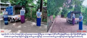 လူမှုဝန်ထမ်း ကယ်ဆယ်ရေးနှင့်ပြန်လည်နေရာချထားရေး ဝန်ကြီးဌာန၊ ဘေးအန္တရာယ်ဆိုင်ရာစီမံခန့်ခွဲမှုဦးစီးဌာန မြောင်းမြ ခရိုင်ဦးစီးမှူးရုံးမှ တာဝန်ရှိသူများသည် (၆.၈.၂၀၂၀) ရက်နေ့၊ နံနက် (၀၉:၀၀) နာရီအချိန်မှစ၍ နေ့လည် (၁၃:၀၀) နာရီအချိန် အထိ မြောင်းမြခရိုင်၊ အိမ်မဲမြို့နယ်အတွင်းရှိ ပွဲစားဂုံညင်းတန်းကျေးရွာ၊ ရိုးစောင်းကျေးရွာ၊ ကုလားစုကျေးရွာ၊ လိပ်ကုန်း ကျေးရွာ၊ လင်းတိုင်းကျေးရွာ၊ သါယါကုန်းလေးကျေးရွာတို့တွင် လတ်တလောနိုင်ငံအသီးသီးတွင် ကူးစက်ပြန့်ပွားလျက်ရှိသော Covid -19 ကူးစက်ရောဂါထိန်းချုပ်ရေးနှင့် အရေးပေါ်တုန့်ပြန်ရေး ကော်မတီမှ (၂၉.၇.၂၀၂၀)ရက်နေ့အထိ ထုတ်ပြန်ပြီးဖြစ်သည့် တားမြစ်မိန့်နှင့် ညွှန်ကြားချက်များအားလည်းကောင်း ရာသီအလိုက်ဖြစ်ပွားတက်သော သဘာဝဘေးအန္တရာယ်များနှင့် ပတ်သက်သည့် သဘာဝဘေးအသိပညာပေးခြင်းတို့ အားလည်းကောင်း အများပြည်သူများသိရှိလိုက်နာရန် ကွင်းဆင်း လှည့်လည်၍ အသိပညာပေးခြင်း ဆောင်ရွက်ခဲ့ပါကြောင်း သတင်းရရှိပါသည်။