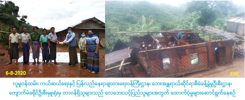 လူမှုဝန်ထမ်း၊ ကယ်ဆယ်ရေးနှင့် ပြန်လည်နေရာချထားရေးဝန်ကြီးဌာန၊ ဘေးအန္တရာယ်ဆိုင်ရာစီမံခန့်ခွဲမှုဦးစီးဌာန၊ ကျောက်မဲခရိုင်ဦးစီးမှူးရုံးမှ တာဝန်ရှိသူများသည် (၃-၈-၂၀၂၀)ရက်နေ့၌ ကျောက်မဲမြို့နယ်၊ ကြူရှောကျေးရွာအုပ်စု၊ ကြူရှော (တောင်)ကျေးရွာတွင် လေပြင်းတိုက်ခတ်မှုကြောင့် အမိုးလန်ပျက်စီးခဲ့သည့် လူနေအိမ်(၆)လုံး၊ အိမ်ထောင်စု(၆)စုအတွက် အိမ်ဆောက်ပစ္စည်းဖိုးထောက်ပံ့ငွေ(၁၉၇,၁၀ဝ/-)ကျပ်နှင့် လူဦးရေ(၂၂)ဦးအတွက် ဆန်ရိက္ခာ(၇)ရက်စာဖိုးထောက်ပံ့ငွေ (၄၆,၂၀ဝ/-)ကျပ်၊ စုစုပေါင်းထောပ်ပံ့ငွေ(၂၄၃,၃၀ဝ/-)ကျပ်အား (၆-၈-၂၀၂၀)ရက်နေ့(၁၀း၀၀)နာရီအချိန်တွင် ကျေးရွာအုပ်ချုပ် ရေးမှူးနှင့်အတူ ပြည်သူများ လက်၀ယ်အရောက်ထောက်ပံ့ခဲ့ပါ ကြောင်း သတင်းရရှိသည်။