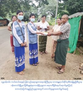 လူမှုဝန်ထမ်း၊ ကယ်ဆယ်ရေးနှင့် ပြန်လည်နေရာချထားရေးဝန်ကြီးဌာန၊ ဘေးအန္တရာယ်ဆိုင်ရာစီမံခန့်ခွဲမှုဦးစီးဌာန၊ ပန်းတောင်းမြို့နယ်ဦးစီးမှူးရုံးမှတာဝန်ရှိသူများသည် ပန်းတောင်းမြို့နယ်၊ သရက်လိန်ကျေးရွာအုပ်စု၊ သရဲဇီးကျေးရွာတွင် (၅-၈-၂၀၂၀)ရက်နေ့၌ ဧရာဝတီမြစ်ရေဝင် ရောက်မှုကြောင့် ရွှေ့ပြောင်းခဲ့ရသော အိမ်ထောင်စု(၃)စုမှ လူဦးရေ(၁၄)ဦးအတွက် ဆန်ရိက္ခာ (၇)ရက်စာဖိုးထောက်ပံ့ငွေ(၂၉,၄၀၀/-)ကျပ်၊ အိမ်ထောင်စု(၃)စုအတွက် ဆပ်ပြာ(၃)တောင့်နှင့် လူဦးရေ(၁၄)ဦးအတွက်(၁)ဦးလျှင် Surgical Mask (၂)ခုနှုန်းဖြင့် (၂၈)ခုတို့အား (၇-၈-၂၀၂၀) ရက်နေ့ (၁၆း၃၀)နာရီ အချိန်တွင် သူရဲဇီးကျေးရွာ၌ ရပ်/ ကျေးတာဝန်ရှိသူများနှင့်အတူ ပြည်သူ့ လက်ဝယ်အရောက် သွားရောက်ထောက်ပံ့ပေးအပ်ခဲ့ပါကြောင်း သတင်းရရှိပါသည်။