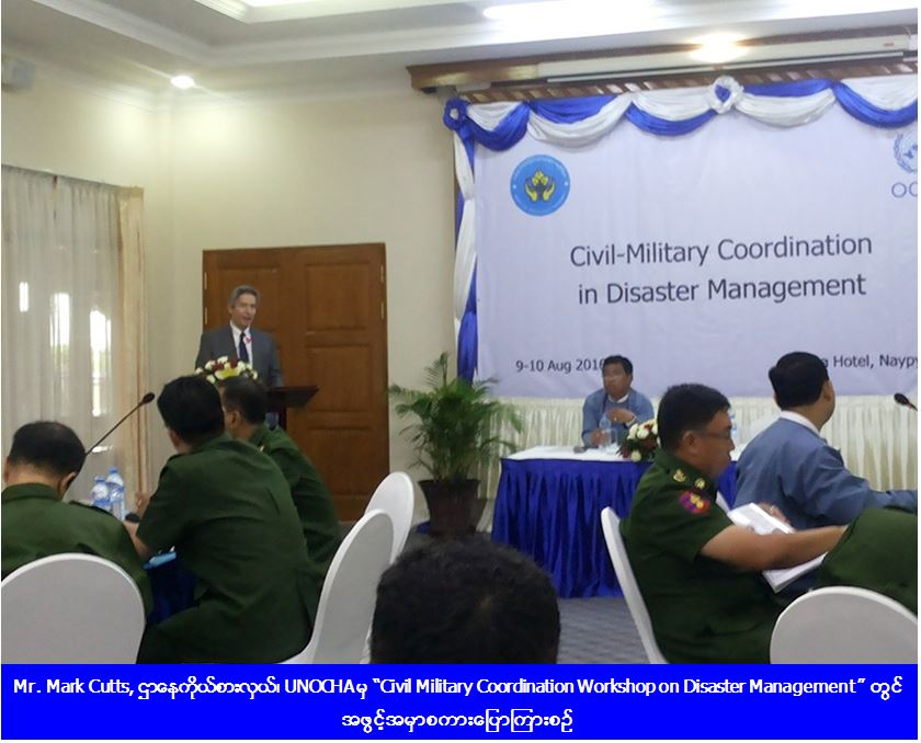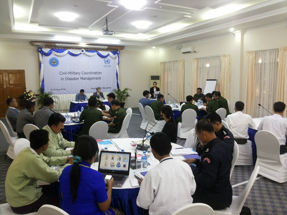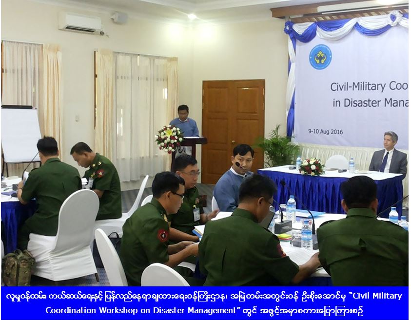၁။ လူမှုဝန်ထမ်း၊ ကယ်ဆယ်ရေးနှင့် ပြန်လည်နေရာချထားရေးဝန်ကြီးဌာန၊ ကာကွယ်ရေးဝန်ကြီးဌာနနှင့် UNOCHA တို့ ပူးပေါင်းကျင်းပသည့် “Civil Military Coordination Workshop on Disaster Management” ကို (၉.၈.၂၀၁၆)ရက်နေ့မှ (၁၀.၈.၂၀၁၆)ရက်နေ့အထိ အမရာဟိုတယ်၊ နေပြည်တော်တွင် ကျင်းပရာ လူမှုဝန်ထမ်း၊ ကယ်ဆယ်ရေးနှင့် ပြန်လည်နေရာချထားရေးဝန်ကြီးဌာန၊ ကာကွယ်ရေးဝန်ကြီးဌာန၊ မြန်မာနိုင်ငံရဲတပ်ဖွဲ့၊ မီးသတ်ဦးစီးဌာန၊ အထွေထွေအုပ်ချုပ်ရေးဦးစီးဌာန၊ မြန်မာနိုင်ငံကြက်ခြေနီအသင်းနှင့် UNOCHA တို့မှ တာဝန်ရှိသူများ တက်ရောက်ခဲ့ကြပါသည်။