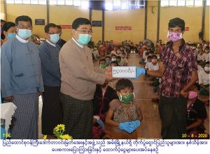 ဆက်လက်၍ တိုက်ပွဲရှောင်စခန်းများရှိ ထိခိုက်လွယ်အုပ်စုများတွင်ပါဝင်သော သက်ကြီး ရွယ်အို(၆၈) ဦး၊ အသက် (၅) နှစ်အောက်ကလေးသူငယ် (၃၁၂) ဦး၊ မသန်စွမ်းသူ (၂၇) ဦးနှင့် ကိုယ်ဝန်ဆောင်မိခင် (၂၃)ဦးတို့အတွက် လူမှုဝန်ထမ်းဦးစီးဌာနနှင့် ပြန်လည်ထူထောင်ရေးဦးစီးဌာန တို့က တစ်ဦးလျှင် ငွေကျပ် (၃) သောင်းနှုန်းဖြင့် စုစုပေါင်း ထောက်ပံ့ငွေကျပ် ၁၂,၉၀၀,၀၀ဝိ/- (ကျပ်တစ်ရာနှစ်ဆယ့်ကိုးသိန်းတိတိ) ကို ပေးအပ်ခဲ့ပါသည်။