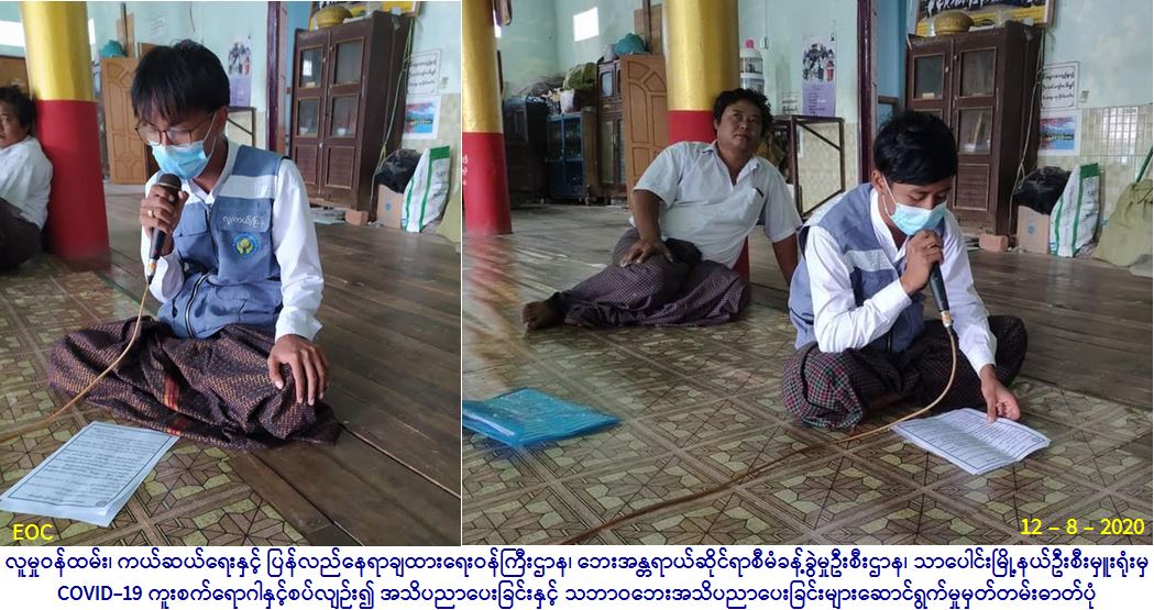 လူမှုဝန်ထမ်း၊ ကယ်ဆယ်ရေးနှင့် ပြန်လည်နေရာချထားရေး ဝန်ကြီးဌာန၊ ဘေးအန္တရာယ်ဆိုင်ရာစီမံခန့်ခွဲမှုဦးစီးဌာန၊ သာပေါင်း မြို့နယ်ဦးစီးမှူးရုံးမှ တာဝန်ရှိသူများသည် (၁၂-၈-၂၀၂၀) ရက်နေ့၊ (၁၁:၃၀) နာရီအချိန်တွင် သာပေါင်းမြို့နယ်၊ အုတ်ရှစ်ကျေးရွာ အုပ်စု၊ အုတ်ရှစ်ကျေးရွာ၊ ကညင်ကုန်းကျေးရွာ၊ ထန်းတိုကျေးရွာတို့တွင် Covid-19 ဒုတိယလှိုင်းကူးစက်မှု မဖြစ်ပွားစေရန်နှင့် သဘာဝဘေးနှင့်ပတ်သက်သည့် ဆောင်ရန်/ရှောင်ရန်များကို ကျေးရွာ/ရပ်ကွက်နေ မိဘပြည်သူတို့အား အသိပညာပေး ဟောပြောဆောင်ရွက်ခဲ့ပါကြောင်း သတင်းရရှိပါသည်။