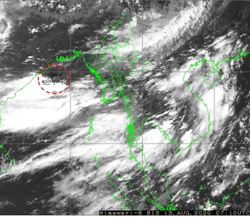 ယနေ့မြန်မာစံတော်ချိန် (၁၃:၃၀)နာရီအချိန် တိုင်းထွာချက်များအရ ဘင်္ဂလား ပင်လယ်အော် အနောက်မြောက်ပိုင်း (အိန္ဒိယနိုင်ငံ၊ ဩရိဿပြည်နယ် မြောက်ပိုင်း ကမ်းလွန်- အနောက်ဘင်္ဂလားပြည်နယ်ကမ်းခြေ)တို့တွင် လေဖိအားနည်းရပ်ဝန်းတစ်ခု ဖြစ်ပေါ်နေပါ သည်။