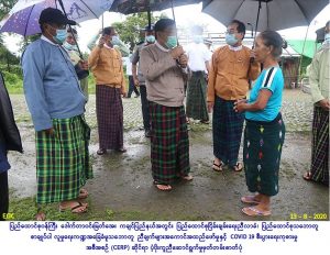 ထို့နောက် ကျေးရွာအုပ်ချုပ်ရေးမှူးရုံးတွင် ကျေးရွာနေ ပြည်သူများနှင့် တွေ့ဆုံပြီး ထောက်ပံ့မှုများ ဆောင်ရွက်ခဲ့ပါသည်။ ထိုသို့တွေ့ဆုံရာတွင် ပြည်ထောင်စုဝန်ကြီးက ပြည်သူ့အစိုးရအနေဖြင့် တာဝန်စတင်ယူချိန်ကတည်းက တိုင်းရင်းသားအရေးနှင့် ပြည်တွင်း ငြိမ်းချမ်းရေးကို ဦးစားပေးဖော်ဆောင်ခဲ့ပါကြောင်း၊ ပြည်ထောင်စုငြိမ်းချမ်းရေး ညီလာခံ-၂၁ ရာစုပင်လုံကို (၃)ကြိမ် တိုင်ကျင်းပခဲ့ပြီး ဘုံသဘောတူညီချက် (၅၁)ချက်ရရှိခဲ့ပြီးဖြစ်ကြောင်း၊ မကြာမီ စတုတ္ထအကြိမ်ကို ကျင်းပမှာ ဖြစ်ပါကြောင်း၊ အဆိုပါဘုံ သဘောတူညီချက်များတွင် ဒုတိယအကြိမ်တွင် လူမှုရေးကဏ္ဍ အခြေခံမူသဘောတူညီချက် (၄)ချက်နှင့် တတိယ အကြိမ်တွင် (၇)ချက် စုစုပေါင်း (၁၁) ချက်ရရှိခဲ့ကြောင်း၊ ထိုသဘောတူညီချက်များကို အစိုးရက အကောင်အထည်ဖော်လျက်ရှိ ကြောင်း၊ မိမိတို့ဝန်ကြီးဌာနက တာဝန်ယူဆောင်ရွက်ရာတွင် နေရပ်စွန့်ခွာရသူများကို ပံ့ပိုးကူညီမှုပေးခြင်း၊ စနစ်တကျ ပြန်လည်နေရာချထားနိုင်ရေး အတွက် ပြည်တွင်းနေရပ်စွန့်ခွာသူများ ပြန်လည်နေရာချထားရေးနှင့် ယာယီခိုလှုံရာ စခန်းများ ပိတ်သိမ်းရေးဆိုင်ရာ အမျိုးသားအဆင့် မဟာဗျူဟာစီမံချက်ကို ရေးဆွဲအတည်ပြုပြီး အကောင်အထည်ဖော်လျက်ရှိခြင်း၊ သက်ကြီးရွယ်အိုများ၊ မသန်စွမ်းသူများ၊ ကိုယ်ဝန်ဆောင်များကို ပံ့ပိုးကူညီမှု ပေးခြင်း၊ မူးယစ်ဆေးဝါးနှင့် ပတ်သက်၍ ထုတ်လုပ်၊ ဖြန့်ဖြူး၊ရောင်းချ၊ သုံးစွဲခြင်းများကို စနစ်တကျတားဆီးကာကွယ်အရေးယူမှုများ ပြုလုပ်ခြင်း၊ ကဏ္ဍအသီးသီးတွင် အမျိုးသမီး များ ပါဝင်မှုနှုန်းမြင့်မားအောင် ကြိုးပမ်း ဆောင်ရွက်ခြင်း၊ လူတိုင်းလက်လှမ်းမီလွှမ်းခြုံနိုင်သော ပညာရေးစနစ်နှင့် ကျန်းမာရေး စောင့်ရှောက်မှုစနစ်များကို ရေရှည်စီမံချက်များဖြင့်အကောင် အထည်ဖော်လျက်ရှိခြင်း၊ မသန်စွမ်းသူများ၊ ကလေးသူငယ်များ၊ သက်ကြီးရွယ်အိုများအတွက် ဥပဒေများပြဌာန်း၍ အခွင့်အရေးများဖော်ဆောင်ပေးလျက်ရှိခြင်း၊ လူမှုဖွံ့ဖြိုးရေးဆိုင်ရာ ကိစ္စများ ဆောင်ရွက်ရာတွင် လူမှုသဟဇာတသဘောတရားကို ထည့်သွင်းဆောင်ရွက်ခြင်း၊ မူးယစ်ဆေးဝါးနှင့်ပတ်သက်၍ အလွဲသုံးမှု လျှော့ချရေး၊ ကုသရေးနှင့် ပြန်လည်ထူထောင်ရေးအတွက် စနစ်တကျစီမံချက်များဖြင့် ချမှတ်ဆောင်ရွက်လျက်ရှိခြင်း၊ ကလေး သူငယ်များအတွက် ကြီးလေးသော ချိုးဖောက်မှုပပျောက်စေရေးဦးတည်သည့် စီမံချက်များကိုလည်း အကောင်အထည်ဖော် ဆောင်ရွက်လျက်ရှိပါကြောင်း၊ ထို့အပြင် လက်ရှိ COVID-19 ကာလတွင် အခက်အခဲများကြုံတွေ့နေရသော ပြည်သူများအတွက် အစိုးရက COVID 19 စီးပွားရေးကုစားမှုအစီအစဉ် (CERP) ဆိုင်ရာ ပံ့ပိုးကူညီမှုများ ဆောင်ရွက်သွားမည်ဖြစ်ကြောင်း ပြောကြားပြီး နေရပ်စွန့်ခွာ