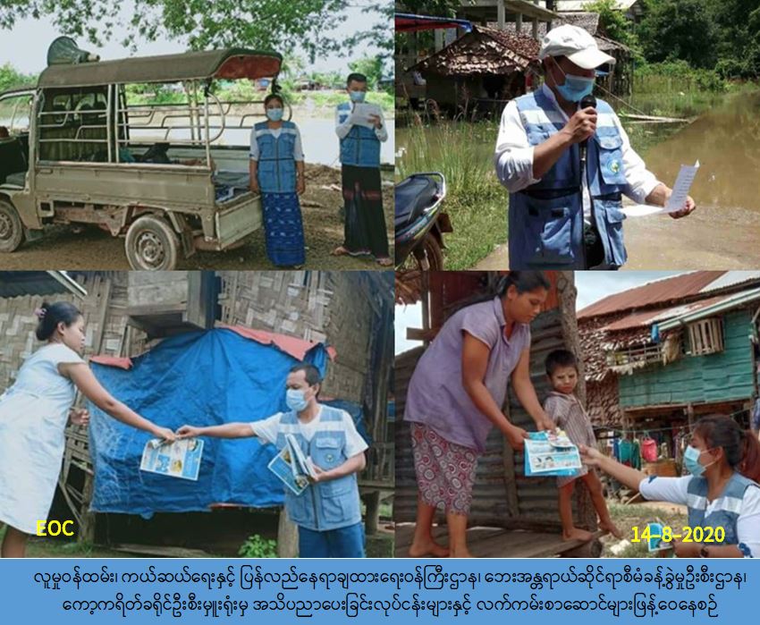 လူမှုဝန်ထမ်း၊ ကယ်ဆယ်ရေးနှင့်ပြန်လည်နေရာချထားရေးဝန်ကြီးဌာန၊ ဘေးအန္တရာယ်ဆိုင်ရာ စီမံခန့်ခွဲမှုဦးစီဌာန၊ ကော့ကရိတ်ခရိုင်ဦးစီးမှူးရုံးမှ တာဝန်ရှိသူများသည် (၁၄-၈-၂၀၂၀)ရက်နေ့၊ နံနက် (၈:၀၀) နာရီအချိန်မှ နေ့လည် (၁၂:၀၀) နာရီအထိ ကော့ကရိတ်ခရိုင်၊ ကြာအင်းဆိပ်ကြီး မြို့နယ်တွင်းရှိ ရပ်ကွက်များဖြစ်သော အမှတ်(၄/၅/၆)တို့၌ Covid-19 ကူးစက်မြန်ရောဂါပြန့် ပွားမှုများ မဖြစ်ပွားစေရန်အတွက် သိရှိလိုက်နာရမည့် အချက်များနှင့် မိုးရာသီကာလအတွင်း ဖြစ်ပွားတတ်သော သဘာဝဘေးအန္တရာယ်များနှင့် စပ်လျဉ်း၍ဆောင်ရန်/ရှောင်ရန်အချက်များ အား အသံချဲ့စက်ဖြင့် ပြည်သူလူထုအတွင်း အသိပညာပေးဆောင်ရွက်ခဲ့ပြီး လက်ကမ်းစာစောင် များလည်း ဖြန့်ဝေပေးခဲ့ပါကြောင်းသတင်းရရှိပါသည်။