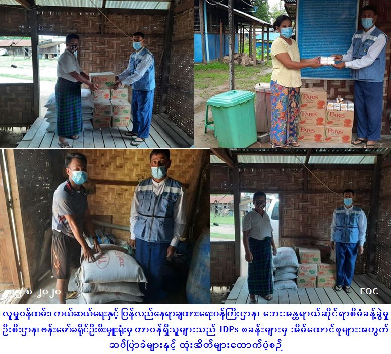 လူမှုဝန်ထမ်း၊ ကယ်ဆယ်ရေးနှင့် ပြန်လည်နေရာချထားရေးဝန်ကြီးဌာန၊ ဘေးအန္တရာယ်ဆိုင်ရာစီမံခန့်ခွဲမှုဦးစီးဌာန၊ ဗန်းမော်ခရိုင်ဦးစီးမှူးရုံးမှ တာဝန်ရှိသူများသည် မံစီမြို့နယ် နှစ်ခြင်း IDPs စခန်းမှ အိမ်ထောင်စု(၁၇၇)စု၊ လူဦးရေ(၇၈၃)ဦးအတွက် Paris ဆပ်ပြာ (၇၈၃)ခဲနှင့် ထုံးအိတ်(၁၀)အိတ်၊ မိုင်းခေါင် နှစ်ခြင်းIDPs စခန်းမှ အိမ်ထောင်စု(၃၆၅)စု၊ လူဦးရေ(၁၅၈၆)ဦးအတွက် Paris ဆပ်ပြာ (၁၅၈၆)ခဲနှင့် ထုံးအိတ်(၁၀)အိတ်၊ မိုင်းခေါင် RC စခန်းမှ အိမ်ထောင်စု (၁၅၄)စု၊ လူဉီးရေ (၇၁၇)ဦးတို့အတွက် ဆပ်ပြာ(၇၁၇)ခဲနှင့် ထုံး(၁၀)အိတ်တို့အား (၁၅-၈-၂၀၂၀) ရက်နေ့၊ နံနက်(၁၀:၀၀)နာရီအချိန်တွင် သွားရောက်ထောက်ပံ့ခဲ့ကြောင်း သတင်းရရှိပါသည်။