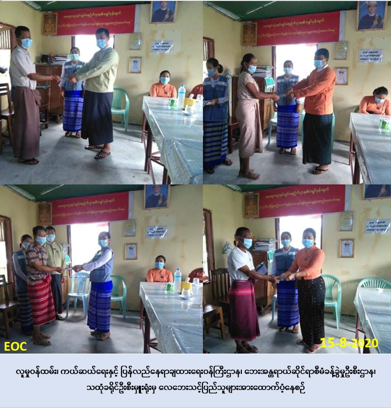 လူမှုဝန်ထမ်း၊ ကယ်ဆယ်ရေးနှင့် ပြန်လည်နေရာချထားရေးဝန်ကြီးဌာန၊ ဘေးအန္တရာယ်ဆိုင်ရာ စီမံခန့်ခွဲမှုဦးစီးဌာန၊ သထုံခရိုင်ဦးစီးမှူးရုံးမှ တာဝန်ရှိသူများသည် (၁၄-၈-၂၀၂၀)ရက်နေ့၊ (၂၁:၃၀ )နာရီအချိန်ခန့်နှင့် (၁၅-၈-၂၀၂၀)ရက်နေ့၊ (၀၅:၀၀)နာရီအချိန်ခန့်၌ မွန်ပြည်နယ် သထုံခရိုင်၊ ပေါင်မြို့နယ်၊ ဥတံတ္တားကျေးရွာတွင် မိုးရွာသွန်းပြီး လေပြင်းတိုက်ခတ်မှုကြောင့် လေဘေးသင့်ပြီး အမိုးလန်ခဲ့သည့် လူနေအိမ်(၁၃)လုံးအတွက် အိမ်ဆောက် ပစ္စည်းဖိုးထောက်ပံ့ငွေ (၈၆၉,၀၀ဝ/-)ကျပ် နှင့်လူဦးရေ (၆၃)ဦးတို့အတွက် (၇)ရက်စာ ဆန်ရိက္ခာဖိုးထောက်ပံ့ငွေ(၁၃၂,၃၀ဝ/-)ကျပ်၊ စုစုပေါင်းထောက်ပံ့ငွေ (၁,၀၀၁,၃၀ဝ/-)ကျပ် တို့အား (၁၅-၈-၂၀၂၀) ရက်နေ့ (၁၂:၀၀)နာရီ အချိန်ခန့်တွင် ဥတံတ္တားကျေးရွာအုပ်ချုပ်ရေးမှူးရုံး၌ ဘေးသင့်ပြည်သူများထံ လက်ဝယ်အရောက် သွားရောက်ထောက်ပံ့ပေးအပ်ခဲ့ပါကြောင်း သတင်းရရှိပါသည်။