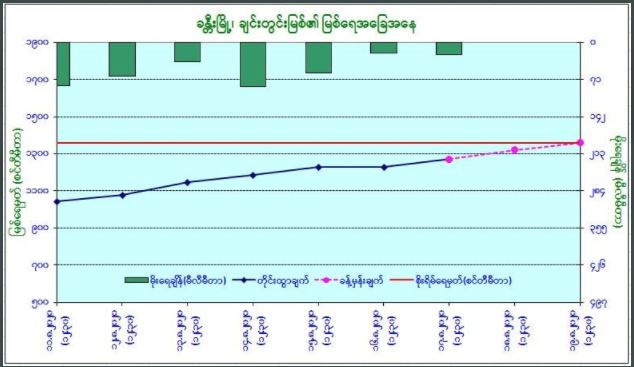 ယနေ့မြန်မာစံတော်ချိန် (၁၂:၃၀)နာရီအချိန် တိုင်းထွာချက်အရ ချင်းတွင်းမြစ် ရေသည် ခန္တီးမြို့တွင် (၃)ပေခန့် ယင်းမြို့၏ စိုးရိမ်ရေမှတ်အောက်တွင် ရောက် ရှိနေပါသည်။ အဆိုပါမြစ်ရေသည် နောက် (၂)ရက်အတွင်း ယင်းမြို့၏ စိုးရိမ် ရေမှတ်သို့ ရောက်ရှိနိုင်ပါသည်။