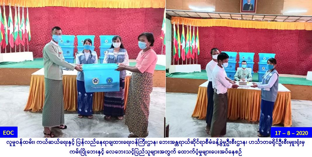 လူမှုဝန်ထမ်း၊ ကယ်ဆယ်ရေးနှင့်ပြန်လည်နေရာချထားရေး ဝန်ကြီးဌာန၊ ဘေးအန္တရာယ်ဆိုင်ရာစီမံခန့်ခွဲမှုဦးစီးဌာန၊ ဟင်္သာတ ခရိုင်ဦးစီးမှူးရုံးမှ တာဝန်ရှိသူများသည် ဇလွန်မြို့နယ်၊ (ကြာအင်း၊ ညောင်ပင်သာ၊ ရွှေဘို)အုပ်စု၊ ကျေးရွာခွဲ(၃)ရွာတို့တွင် (၁၃-၈ -၂၀၂၀) ရက်နေ့ဖြစ်ပွားခဲ့သော ကမ်းပြိုဘေးကြောင့် ကြိုတင်ရွှေ့ပြောင်းရသော အိမ်ခြေ/အိမ်ထောင်စု(၈)စုအတွက် အိမ်ဆောက်ပစ္စည်းဖိုးရန်ပုံငွေ (၈၀၀၀၀၀/-)၊ လူဦးရေ(၄၃)ဦးအတွက် ဆန်ရိက္ခာ(၇)ရက်စာရန်ပုံငွေ (၉၀၃၀၀/-)၊ စုစုပေါင်း ရန်ပုံငွေ (၈၉၀၃၀၀ိ/-) ကိုလည်းကောင်း၊ (၁၅-၈-၂၀၂၀) ရက်နေ့ဖြစ်ပွားခဲ့သော ဇလွန်မြို့နယ် (တောင်ပို့ တစ်ရာ၊ ဖားလက ်ခို၊ လိန်ကုန်း၊ အရှေေ့လေး တူး၊ မဟာသာ၊ အိုးဘို)အုပ်စု၊ ကျေးရွာခွဲ(၆)ရွာလေဘေးတွင် ပြိုကျအိမ်ခြေ(ဝါး)(၁၀)လုံးအတွက် အိမ်ဆောက်ပစ္စည်းဖိုးထောက်ပံ့ငွေ (၁၀၀၀၀၀၀/-)၊ တစ်စိတ်တစ်ပိုင်းအိမ်ခြေ (၉)လုံးအတွက် အိမ်ဆောက်ပစ္စည်းဖိုးထောက်ပံ့ငွေ (၂၇၀၀၀၀/-)၊ လူဦးရေ(၇၆)ဦးအတွက် ဆန်ရိက္ခာ(၇)ရက်စာရန်ပုံငွေ (၁၅၉၆၀၀/-)၊ စုစုပေါင်းရန်ပုံငွေ (၁၄၂၉၆၀၀/-)နှင့် ကယ်ဆယ်ရေးပစ္စည်း(၁၆)မျိုး (၁၀)အိမ်ထောင်စာတို့ကို (၁၇-၈-၂၀၂၀)ရက်နေ့ (၁၄:၀၀)နာရီတွင် ဇလွန်မြို့နယ်အထွေထွေအုပ်ချုပ်ရေးဦးစီးဌာန၌ သက်ဆိုင်ရာတာဝန်ရှိသူများနှင့်အတူ အသီးသီးထောက်ပံ့ပေး အပ်ခဲ့ပါကြောင်း သတင်းရရှိပါသည်။