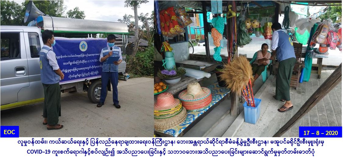 လူမှုဝန်ထမ်း၊ ကယ်ဆယ်ရေးနှင့်ပြန်လည်နေရာချထားရေး ဝန်ကြီးဌာန၊ ဘေးအန္တရာယ်ဆိုင်ရာစီမံခန့်ခွဲမှုဦးစီးဌာန၊ မအူပင်ခရိုင် ဦးစီးမှူးရုံးမှ တာဝန်ရှိသူများသည် (၁၇-၈-၂၀၂၀)ရက်နေ့တွင် မအူပင်မြို့နယ်၊ ကျုံစုတ်ကျေးရွာအုပ်စုရှိ ကျုံစုတ်ကျေးရွာ၊ မင်းဘောကျေးရွာ၊ ဇရပ်ကုန်းကျေးရွာနှင့် ခုနှစ်အိမ်တန်းကျေးရွာတို့၌ COVID-19 ရောဂါကူးစက်ပျံ့နှံ့မှု ဒုတိယလှိုင်းမဖြစ်ပွား စေရန် အများပြည်သူ အလွယ်တကူသိရှိလိုက်နာဆောင်ရွက်ရန်အချက်များနှင့် မိုးရာသီတွင် ဖြစ်ပွားလေ့ရှိသည့် သဘာဝဘေး အန္တရာယ် များကြိုတင်ပြင်ဆင်ရေး အသိပေးချက်များကို လှည့်လည် ဟောပြောခြင်း၊ ဘေး (၈) မျိုးလက်ကမ်းစာစောင်များ ဝေငှခြင်းများ ဆောင်ရွက်ခဲ့ပါကြောင်း သတင်းရရှိပါသည်။