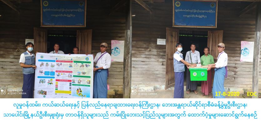လူမှုဝန်ထမ်း၊ ကယ်ဆယ်ရေးနှင့် ပြန်လည်နေရာချထားရေးဝန်ကြီးဌာန၊ ဘေးအန္တရာယ်ဆိုင်ရာစီမံခန့်ခွဲမှုဦးစီးဌာန၊ သာပေါင်းမြို့နယ်ဦးစီးမှူးရုံးမှ တာဝန်ရှိသူများသည် (၁၁-၈-၂၀၂၀)ရက်နေ့တွင် သာပေါင်းမြို့နယ်၊ ငါးဘတ်ချောင်း ကျေးရွာအုပ်စု၊ ဆင်ကုံးကျေးရွာ၌ ဖြစ်ပွားခဲ့သော ကမ်းပြိုဘေးကြောင့် ပြိုကျပျက်စီးနေအိမ်(၁)လုံးအတွက် အိမ်ဆောက်ပစ္စည်း ဖိုးထောက်ပံ့ငွေ (၁၀၀၀၀ဝ/-)ကျပ်၊ လူဦးရေ(၂)ဦးအတွက် ဆန်ရိက္ခာ(၇)ရက်စာဖိုးထောက်ပံ့ငွေ(၄၂၀ဝ/-)ကျပ်၊ စုစုပေါင်း ထောက်ပံ့ငွေ(၁၀၄၂၀ဝ/-)ကျပ်နှင့် ကယ်ဆယ်ရေးပစ္စည်း(၁၆)မျိုးပါ (၁)အိမ်ထောင်စာ(၃၄၇၅၃/-)တို့အား (၁၇-၈-၂၀၂၀) ရက်နေ့ (၁၁:၀၀)နာရီအချိန်တွင် ကျေးရွာအုပ်ချုပ်ရေးမှူးနှင့်တကွတာဝန်ရှိသူများ၏ ရှေ့မှောက်၌ ဘေးသင့်ပြည်သူများ၏ လက်ဝယ်သို့ထောက်ပံ့ပေးအပ်ပြီးဖြစ်ပါကြောင်း သတင်းရရှိပါသည်။