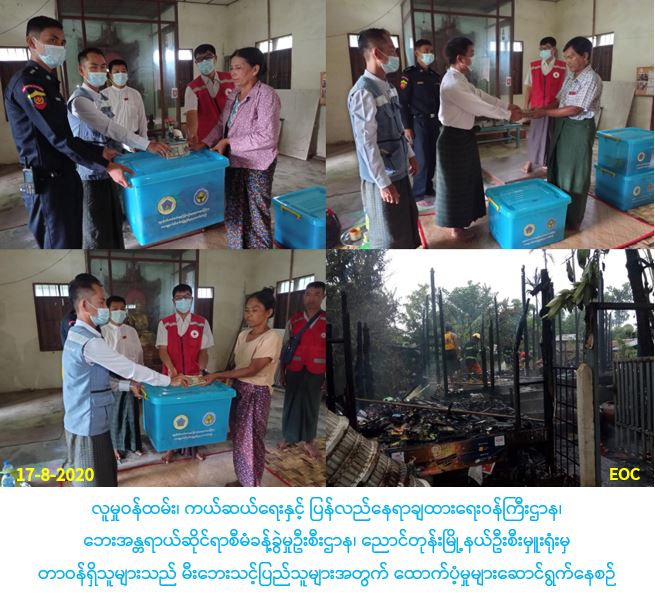 လူမှုဝန်ထမ်း၊ ကယ်ဆယ်ရေးနှင့် ပြန်လည်နေရာချထားရေးဝန်ကြီးဌာန၊ ဘေးအန္တရာယ်ဆိုင်ရာစီမံခန့်ခွဲမှုဦးစီးဌာန၊ ညောင်တုန်းမြို့နယ်ဦးစီးမှူးရုံးမှ တာဝန်ရှိသူများသည် (၁၇-၈-၂၀၂၀)ရက်နေ့ (၁၆:၀၀)နာရီအချိန်တွင် ညောင်တုန်းမြို့နယ်၊ ဆားမလောက်ကျေးရွာအုပ်စု ၊ဆားမလောက်ကျေးရွာ၊ ဘုရားလမ်း၌ ဖြစ်ပွားခဲ့သော မီးဘေးကြောင့် မီးလောင်ကျွမ်းပျက်စီးခဲ့ သည့် နေအိမ်(၃)လုံး၊ အိမ်ထောင်စု (၃) မှ လူဦးရေ (၈)ဦးအတွက် ဆန်ရိက္ခာ(၇)ရက်စာဖိုးထောက်ပံ့ငွေ (၁၆၈၀၀/-)ကျပ်၊ အိမ်ဆောက်ပစ္စည်းဖိုးထောက်ပံ့ငွေ (၅၀၀၀၀၀/-)ကျပ်၊ စုစုပေါင်းရန်ပုံငွေ (၅၁၆၈၀၀/)ကျပ်နှင့် ကယ်ဆယ်ရေးပစ္စည်း(၁၅)မျိုး (၃)အိမ်ထောင်စုစာ (၉၇၀၅၉/-)ကျပ်၊ care myanmar ပိုက်ဖျာ(၃)ချပ်တို့အား (၁၇-၈-၂၀၂၀)ရက်နေ့တွင် ညောင်တုန်းမြို့နယ်၊ မဲဆန္ဒနယ် အမှတ်(၂)၊ တိုင်းဒေသကြီးလွှတ်တော်ကိုယ်စားလှယ်၊ ညောင်တုန်းမြို့နယ်မီးသတ်ဦးစီးဌာန၊ မြို့နယ်မီးသတ်ဦးစီးမှူး၊ ညောင်တုန်းမြို့နယ် ကြက်ခြေနီတပ်ဖွဲ့ဝင်များ၊ ကျေးရွာတာဝန်ရှိသူများနှင့်အတူ မီးဘေးသင့်ပြည်သူများလက်ဝယ် အရောက် ကွင်းဆင်းထောက်ပံ့ခဲ့ကြောင်းပါ သတင်းရရှိပါသည်။