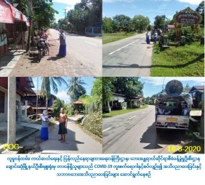 လူမှုဝန်ထမ်း၊ ကယ်ဆယ်ရေးနှင့် ပြန်လည်နေရာချထားရေးဝန်ကြီးဌာန၊ ဘေးအန္တရာယ် ဆိုင်ရာစီမံခန့်ခွဲမှုဦးစီးဌာန၊ ချောင်းဆုံမြို့နယ်ဦးစီးမှူးရုံးမှ တာဝန်ရှိသူများသည် (၁၈-၈-၂၀၂၀) ရက်နေ့တွင် ချောင်းဆုံမြို့နယ် အတွင်းရှိ ဝယ်လမ်းကျေးရွာနှင့် မုရစ်ကလေး ကျေးရွာတို့၌ COVID-19 ကူးစက်ရောဂါနှင့်စပ်လျဉ်း၍ ဆောင်ရန်/ရှောင်ရန်အချက်များ၊ ရေဘေး၊ မုန်တိုင်းဘေး၊ မြေပြိုဘေး၊ မိုးကြိုးဘေးတို့နှင့် စပ်လျဉ်း၍ ဆောင်ရန်/ရှောင်ရန် အချက်များကို အသံချဲ့စက်တို့ဖြင့် လှည့်လှည်အသိပညာပေးနှိုးဆော်ခဲ့ပြီး လက်ကမ်း စာစောင်များ ဝေငှပေးခဲ့ကြောင်း သတင်းရရှိပါသည်။