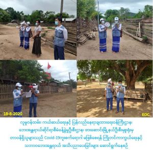 လူမှုဝန်ထမ်း၊ ကယ်ဆယ်ရေးနှင့် ပြန်လည်နေရာချထားရေးဝန်ကြီးဌာန၊ ဘေးအန္တရာယ်ဆိုင်ရာစီမံခန့်ခွဲမှုဦးစီးဌာန၊ ကယားပြည်နယ်ဦးစီးမှူးရုံးနှင့် ဖားဆောင်းမြို့နယ်ဦးစီးမှူးရုံးမှ တာဝန်ရှိသူများသည် (၁၈-၈-၂၀၂၀) ရက်နေ့တွင် ဖားဆောင်း မြို့နယ်၊ ဝမ်အောင်းကျေးရွာအုပ်စု၊ ဝမ်အောင်း(ကယား)ကျေးရွာရှိ ပြည်သူများအား COVID-19ကူးစက်ရောဂါ ပြန့်ပွားမှုမဖြစ်ပွား စေရန်အတွက် သိရှိလိုက်နာရန်အချက်များနှင့် သဘာဝဘေးအန္တရာယ်နှင့်စပ်လျဉ်းသည့် ဆောင်ရန်၊ ရှောင်ရန်များကို အသိပညာ ဖြန့်ဝေခဲ့ပါကြောင်း သတင်းရရှိပါသည်။