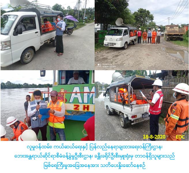 လူမှုဝန်ထမ်း၊ ကယ်ဆယ်ရေးနှင့် ပြန်လည်နေရာချထားရေးဝန်ကြီးဌာန၊ ဘေးအန္တရာယ်ဆိုင်ရာစီမံခန့်ခွဲမှုဦးစီးဌာန၊ ခန္တီးခရိုင်ဦးစီးမှူးရုံးမှ တာဝန်ရှိသူများသည် (၁၈-၈-၂၀၂၀) ရက်နေ့တွင် ခန္တီးခရိုင်အတွင်း ချင်းတွင်းမြစ်ရေ စိုးရိမ်ရေအမှတ် (၁၃၆၀) ထက်ကျော်လွန်သွားပြီ ဖြစ်ပါသဖြင့် ဌာနဆိုင်ရာ ဝန်ထမ်းများနှင့်ပူးပေါင်း၍ မြစ်ရေကြီးမှုအခြေအနေအား သတိပေးနှိုးဆော်ခဲ့ပါကြောင်း သတင်းရရှိပါသည်။