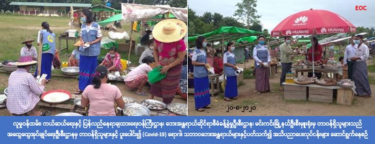 လူမှုဝန်ထမ်း၊ ကယ်ဆယ်ရေးနှင့် ပြန်လည်နေရာချထားရေးဝန်ကြီးဌာန၊ ဘေးအန္တရာယ်ဆိုင်ရာ စီမံခန့်ခွဲမှုဦးစီး ဌာန၊ မင်းကင်းမြို့နယ်ဦးစီးမှူးရုံးမှ တာဝန်ရှိသူများသည် မင်းကင်းမြို့နယ် အထွေထွေအုပ်ချုပ်ရေးဦးစီး ဌာနနှင့် ပူးပေါင်း၍ (၂၀-၈-၂၀၂၀)ရက်နေ့ နံနက်(၀၇:၀၀) အချိန်တွင် မင်းကင်းမြို့ ယာယီဈေး၌ (Covid-19) ရောဂါနှင့် သဘာဝဘေး ကြိုတင်ကာကွယ်ရေးအတွက် mask၊ ရေဘေးနှင့် မြေပြိုဘေး လက်ကမ်းစာစောင်များဖြန့်ဝေခြင်း လုပ်ငန်း ဆောင်ရွက်ခဲ့ကြောင်း သိရှိရပါသည်။