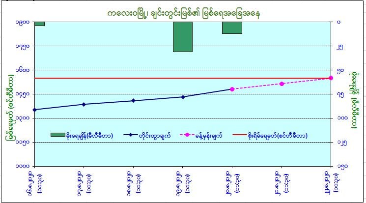 ယနေ့မြန်မာစံတော်ချိန် (၁၁:၃၀)နာရီအချိန် တိုင်းထွာချက်အရ ချင်းတွင်းမြစ် ရေသည် ကလေးဝမြို့တွင် (၂)ပေခန့် ယင်းမြို့၏ စိုးရိမ်ရေမှတ်အောက်တွင် ရောက်ရှိနေပါသည်။ အဆိုပါမြစ်ရေသည် နောက်(၂)ရက်အတွင်း ယင်းမြို့၏ စိုးရိမ်ရေမှတ်သို့ ရောက်ရှိနိုင်ပါသည်။