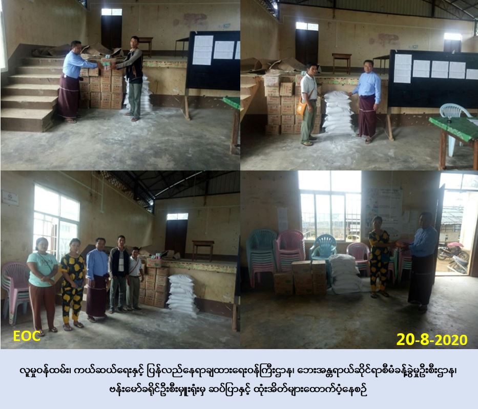 လူမှုဝန်ထမ်း၊ ကယ်ဆယ်ရေးနှင့် ပြန်လည်နေရာချထားရေးဝန်ကြီးဌာန၊ ဘေးအန္တရာယ်ဆိုင်ရာ စီမံခန့်ခွဲမှုဦးစီးဌာန၊ ဗန်းမော်ခရိုင်ဦးစီးမှုးရုံးမှ တာဝန်ရှိသူများသည် ဗန်းမော်ခရိုင်၊ မံစီမြို့နယ်၊ မံဝိန်းကြီးနှစ်ခြင်း IDP စခန်း၊ အိမ်ထောင်စု(၂၄၃)စု၊ လူဦးရေ (၁၁၆၅) ဦးတို့အတွက် Paris ဆပ်ပြာ(၁၁၆၅)ခုနှင့် ထုံးအိတ်(၁၀)အိတ်တို့ကိုလည်းကောင်း၊ မံဝိန်းကြီးကက်သလစ် IDP စခန်း၊ အိမ်ထောင်စု(၅၉၁)စု၊ လူဦးရေ(၃၁၉၇)ဦးအတွက် Paris ဆပ်ပြာ(၃၁၉၇)ခု၊နှင့်ထုံးအိတ်(၁၀)အိတ်တို့ကို(၂၀-၈-၂၀၂၀)ရက်နေ့ ၊ (၁၀:၃၀)နာရီအချိန်တွင် ကျေးရွာအုပ်ချုပ်ရေးမှူးမှတစ်ဆင့် IDP စခန်းတာဝန်ခံများထံသို့ ထောက်ပံ့ခဲ့ကြောင်း သတင်းရရှိပါသည်။