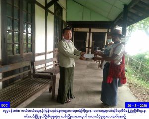 လူမှုဝန်ထမ်း၊ ကယ်ဆယ်ရေးနှင့် ပြန်လည်နေရာချထားရေး ဝန်ကြီးဌာန၊ ဘေးအန္တရာယ်ဆိုင်ရာစီမံခန့်ခွဲမှုဦးစီးဌာန၊ မင်းကင်း မြို့နယ်ဦးစီးမှူးရုံးမှ တာဝန်ရှိသူများသည် (၁၉-၈-၂၀၂၀) ရက်နေ့၌ မင်းကင်းမြို့နယ်၊ သင်္ဘောကျေးရွာတွင် ကမ်းပါးပြိုကျမှု ကြောင့် နေအိမ်ရွှေ့ပြောင်း အိမ်ထောင်စု(၁)စု၊ လူဦးရေ(၆)ဦးတို့အတွက် အိမ်ဆောက်ပစ္စည်းဖိုး (၁၀၀၀၀၀/-)ကျပ်နှင့် ဆန်ရိက္ခာဖိုး (၁၂၆၀၀/-) ကျပ်၊ စုစုပေါင်းထောက်ပံ့ငွေ (၁၁၂၆၀၀/-) ကျပ်တိတိ ကို (၂၀-၈ -၂၀၂၀)ရက်နေ့တွင် မင်းကင်းမြို့၊ အထွေထွေ အုပ်ချုပ်ရေးဦးစီးဌာန၌ သွားရောက် ထောက်ပံ့ခဲ့ပါကြောင်း သတင်းရရှိပါသည်။