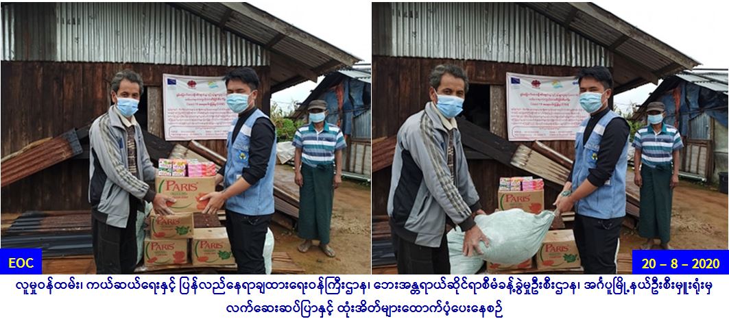 လူမှုဝန်ထမ်း၊ ကယ်ဆယ်ရေးနှင့် ပြန်လည်နေရာချထားရေး ဝန်ကြီးဌာန၊ ဘေးအန္တရာယ်ဆိုင်ရာစီမံခန့်ခွဲမှုဦးစီးဌာန၊ ကွတ်ခိုင် မြို့နယ်ဦးစီးမှူးရုံးမှ တာဝန်ရှိသူများသည် (၂၀.၈.၂၀၂၀) ရက်နေ့တွင် ကွတ်ခိုင်မြို့နယ်အတွင်းရှိ IDP(camps) ပန်ကူ အိမ်ထောင်စု (၁၀၅)စု၊ လူဦးရေ(၆၃၆)အတွက် စခန်း(၁)ခုလျှင် ထုံး(၁၀)အိတ်နှုန်း၊ လူတစ်ဦးလျှင် ဆပ်ပြာ(၂)ခဲနှုန်းဖြင့် စုစုပေါင်းထုံး (၁၀)အိတ်၊ လက်ဆေးဆပ်ပြာ(၁၂၇၂)ခဲတို့ကို ထောက်ပံ့ပေးခဲ့ပါကြောင်း သတင်းရရှိပါသည်။