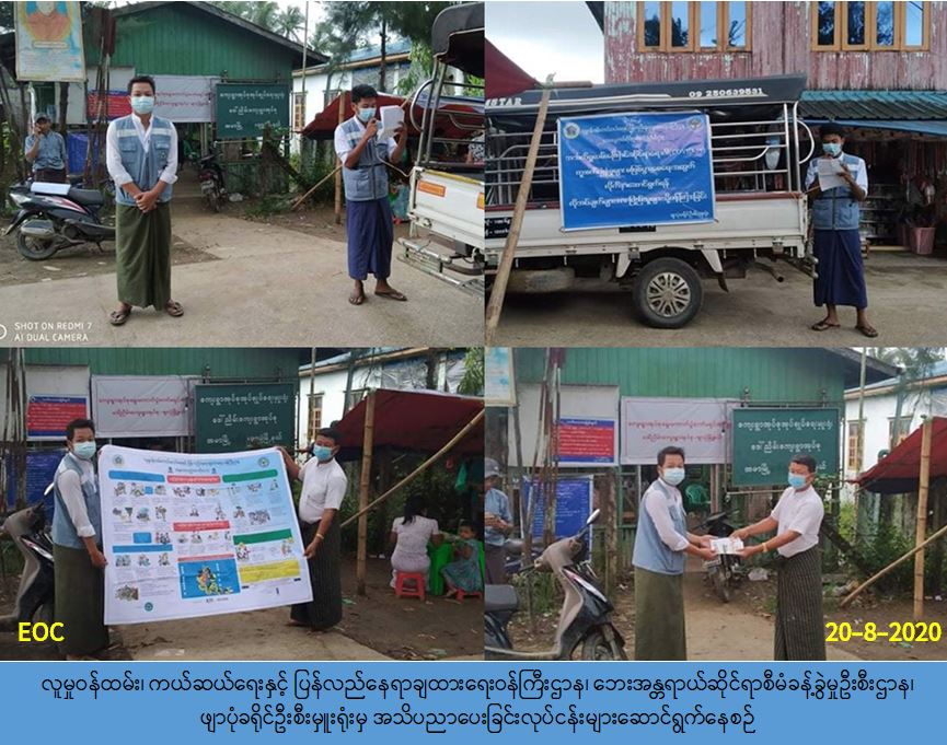 လူမှုဝန်ထမ်း၊ ကယ်ဆယ်ရေးနှင့်ပြန်လည်နေရာချထားရေးဝန်ကြီးဌာန၊ ဘေးအန္တရာယ်ဆိုင်ရာ စီမံခန့်ခွဲမှုဦးစီးဌာန၊ ဖျာပုံခရိုင်ဦးစီးမှူးရုံးမှ တာဝန်ရှိသူများသည် (၂၀-၈-၂၀၂၀) ရက်နေ့တွင် ဖျာပုံမြို့နယ် ဒေါ်ညိမ်းကျေးရွာ၊ ခါးပြတ်ကျေးရွာ၊ ကမန္တာကျေးရွာ၊ ပက်ပြဲကျေးရွာ၊ အေးကုန်း ကျေးရွာ၊ အောင်လှိုင်ကျေးရွာတို့၌ COVID-19 ရောဂါကူးစက်ပျံ့နှံ့မှု ဒုတိယလှိုင်းမဖြစ်ပွားစေရန် အများပြည်သူ အလွယ်တကူသိရှိလိုက်နာဆောင်ရွက်ရန်အချက်များနှင့် မိုးရာသီတွင် ဖြစ်ပွား လေ့ရှိသည့် သဘာဝဘေးအန္တရာယ်များကို ကြိုတင်ပြင်ဆင်ရေးအသိပေးချက်များကို လှည့် လည်ဟောပြောခြင်း၊ ဘေး(၈)မျိုး လက်ကမ်းစာစောင် ဝေငှခြင်းများ ဆောင်ရွက်ခဲ့ပါကြောင်း သတင်းရရှိပါသည်။