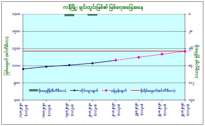 ယနေ့မြန်မာစံတော်ချိန် (၁၁:၃၀)နာရီအချိန် တိုင်းထွာချက်အရ ချင်းတွင်းမြစ်ရေ သည် ကနီမြို့တွင် (၃)ပေခွဲခန့် ယင်းမြို့၏ စိုးရိမ်ရေမှတ်အောက်တွင် ရောက်ရှိ နေပါသည်။ အဆိုပါမြစ်ရေသည် နောက်(၃)ရက်အတွင်း ယင်းမြို့၏ စိုးရိမ် ရေမှတ်သို့ ရောက်ရှိနိုင်ပါသည်။