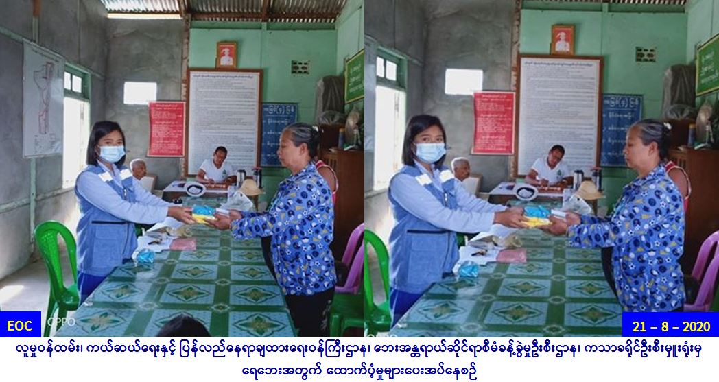 လူမှုဝန်ထမ်း၊ ကယ်ဆယ်ရေးနှင့် ပြန်လည်နေရာချထားရေး ဝန်ကြီးဌာန၊ ဘေးအန္တရာယ်ဆိုင်ရာစီမံခန့်ခွဲမှုဦးစီးဌာန၊ ကသာခရိုင် ဦးစီးမှူးရုံးမှ တာဝန်ရှိသူများသည် ကသာမြို့နယ်၊ ပိန္နဲကုန်းရပ်ကွက်၊ (၂၀-၈-၂၀၂၀) ရက်နေ့ ဧရာဝတီမြစ်ရေ မြင့်တက်မှု ကြောင့် ရေဝင်ပြောင်းရွှေ့ အိမ်ထောင်စု (၁၆) စု၊ လူဦးရေ (၇၆) ဦးတို့အတွက် ဆန်ရိက္ခာဖိုးထောက်ပံ့ငွေ (၁၅၉၆၀၀/-) ကျပ်၊ အဝတ် mask (၁၈)ခု၊ ဆပ်ပြာ (၄) တောင့်အား (၂၁-၈-၂၀၂၀) ရက်နေ့(၁၄:၀၀) နာရီအချိန်တွင် ဘေးသင့်ပြည်သူထံသို့ ထောက်ပံ့ပေးခဲ့ပါကြောင်း သတင်းရရှိပါသည်။