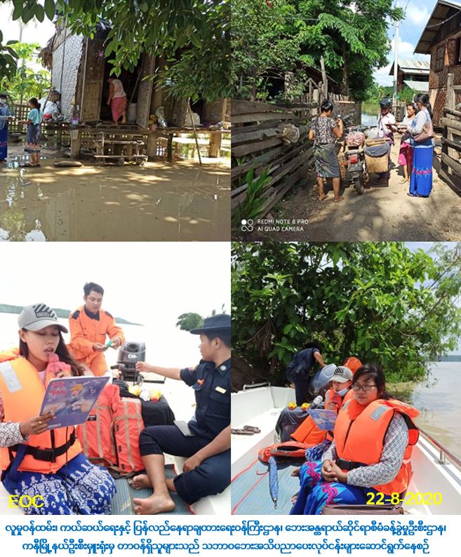 လူမှုဝန်ထမ်း၊ ကယ်ဆယ်ရေးနှင့် ပြန်လည်နေရာချထားရေးဝန်ကြီးဌာန၊ ဘေးအန္တရာယ် ဆိုင်ရာစီမံခန့်ခွဲမှုဦးစီးဌာန၊ ကနီမြို့နယ်ဦးစီးမှူးရုံးမှ တာဝန်ရှိသူများသည် (၂၂-၈-၂၀၂၀) ရက်နေ့၊ (၇:၀၀)အချိန်မှ (၁၅:၃၀)အချိန်ထိ ကနီမြို့နယ် ချင်းတွင်းမြစ်ဘေး (ဝဲ/ယာ )ရှိ ကျေးရွာများ၌ မြစ်ရေကြီးခြင်း သတိပေးချက် နှိုးဆော်ခြင်းလုပ်ငန်းများနှင့် ရေဘေးအသိ ပညာပေးလက်ကမ်းစာစောင်ဖြန့်ဝေခြင်း လုပ်ငန်းများအား မြို့နယ်အထွေထွေအုပ်ချုပ်ရေး ဦးစီးဌာန၊ မီးသတ်ဦးစီးဌာန၊ စည်ပင်သာယာရေးကော်မတီအဖွဲ့များနှင့်အတူ ပူးပေါင်း ဆောင်ရွက်ခဲ့ကြောင်း သတင်းရရှိပါသည်။
