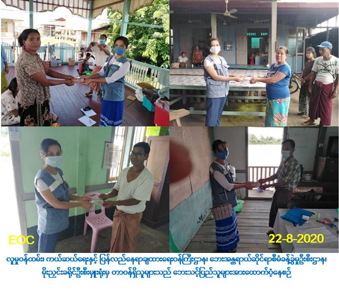လူမှုဝန်ထမ်း၊ ကယ်ဆယ်ရေးနှင့် ပြန်လည်နေရာချထားရေးဝန်ကြီးဌာန၊ ဘေးအန္တရာယ် ဆိုင်ရာစီမံခန့်ခွဲမှုဦးစီးဌာန၊ မိုးညှင်းခရိုင်ဦးစီးမှူးရုံးမှ တာဝန်ရှိသူများသည် (၂၁-၈-၂၀၂၀) ရက်နေ့၌ မိုးကောင်းမြို့နယ်တွင် ရေကြီးရေလျှံမှုကြောင့် နန့်ရင်းရပ်ကွက်နှင့် ကျွန်းပင်သာ ကျေးရွာအုပ်စုတို့တွင် ရေများဝင်ရောက်ခဲ့သောကြောင့် ထပ်မံပြောင်းရွှေ့နေထိုင်ရသော အိမ်ထောင်စု(၁၀)စုမှ လူဦးရေ ကျား(၁၆)ဦး၊ မ(၂၅)ဦး ပေါင်း(၄၁)ဦးတို့အတွက် ဆန်ရိက္ခာဖိုး (၇)ရက်စာထောက်ပံ့ငွေ (၈၆,၁၀ဝိ/-) ကျပ်အား (၂၂-၈-၂၀၂၀)ရက်နေ့၊ (၁၆:၀၀) နာရီအချိန်တွင် ကွင်းဆင်းထောက်ပံ့ခဲ့ကြောင်း သတင်းရရှိပါသည်။