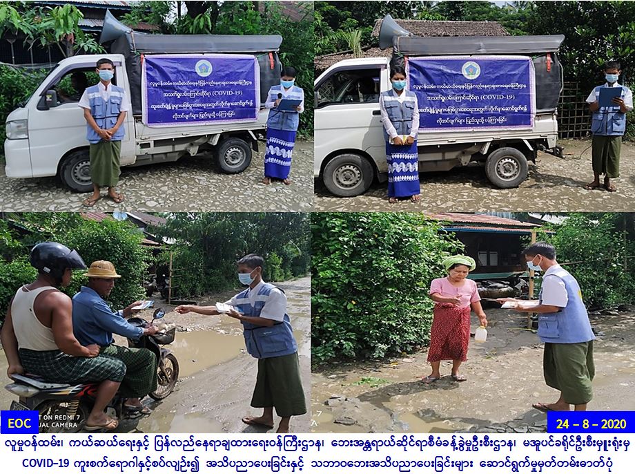 လူမှုဝန်ထမ်း၊ ကယ်ဆယ်ရေးနှင့် ပြန်လည်နေရာချထားရေး ဝန်ကြီးဌာန၊ ဘေးအန္တရာယ်ဆိုင်ရာစီမံခန့်ခွဲမှုဦးစီးဌာန၊ မအူပင်ခရိုင် ်ဦးစီးမှူးရုံးမှ တာဝန်ရှိသူများသည် (၂၄-၈-၂၀၂၀)ရက်နေ့တွင် မအူပင်မြို့နယ်၊ ထနီးကျေးရွာအုပ်စုရှိ ထနီးကျေးရွာ၊ ရွာသစ်စု ကျေးရွာ၊ သံကြိုးတိုင်ကျေးရွာ၊ မအူလေးပင်ကျေးရွာ၊ ကနုံကျေးရွာ၊ပလောင်ကျေးရွာနှင့် ရွှေသစ်ချောင်းကျေးရွာတို့၌ COVID-19 ရောဂါကူးစက်ပျံ့နှံ့မှု ဒုတိယလှိုင်းမဖြစ်ပွားစေရန် အများပြည်သူအလွယ်တကူသိရှိ လိုက်နာဆောင်ရွက်ရန်အချက်များနှင့် မိုးရာသီတွင်ဖြစ်ပွားလေ့ရှိသည့် သဘာဝဘေးအန္တရာယ်များ ကြိုတင်ပြင်ဆင်ရေး အသိပေးချက်များကို လှည့်လည်ဟောပြော ခြင်း၊ အသိပညာပေးဗီနိုင်းပိုစတာပေးအပ်ခြင်းနှင့် ဘေး (၈) မျိုးလက်ကမ်း စာစောင်များ ဝေငှခြင်းများ ဆောင်ရွက်ခဲ့ပါကြောင်း သတင်းရရှိပါသည်။