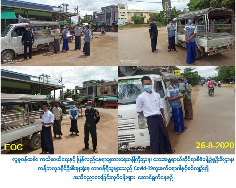 လူမှုဝန်ထမ်း၊ ကယ်ဆယ်ရေးနှင့် ပြန်လည်နေရာချထားရေးဝန်ကြီးဌာန၊ ဘေးအန္တရာယ် ဆိုင်ရာစီမံခန့်ခွဲမှုဦးစီးဌာန၊ ကန့်ဘလူခရိုင်ဦးစီးမှူးရုံးမှ တာဝန်ရှိသူများသည် (၂၆-၈-၂၀၂၀) ရက်နေ့၊ (၀၈:၀၀) နာရီအချိန်မှ (၁၁:၀၀) နာရီအချိန်ထိ ကျွန်းလှမြို့နယ်၊ ကျွန်းလှမြို့ပေါ်ရှိ ရပ်ကွက်များသို့ မိဘပြည်သူများ COVID-19 ရောဂါကူးစက်ပျံ့နှံ့မှု မဖြစ်ပွားစေရေးအတွက် သိရှိပြီး လိုက်နာဆောင်ရွက်ရန်များကို ကျွန်းလှမြို့နယ်စီမံခန့်ခွဲမှုကော်မတီ၊ မြို့နယ်မီးသတ် ဦးစီးဌာန၊ မြို့နယ်ပြန်ကြားရေးနှင့် ပြည်သူ့ဆက်ဆံရေးဦးစီးဌာနတို့နှင့်အတူ ပူးပေါင်း၍ အသိပေးနှိုးဆော်ခြင်းလုပ်ငန်းများ ဆောင်ရွက်ခဲ့ကြောင်း သတင်းရရှိပါသည်၊၊
