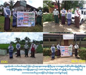 လူမှုဝန်ထမ်း၊ ကယ်ဆယ်ရေးနှင့် ပြန်လည်နေရာချထားရေးဝန်ကြီးဌာန၊ ဘေးအန္တရာယ် ဆိုင်ရာစီမံခန့်ခွဲမှုဦးစီးဌာန၊ သထုံခရိုင်ဦးစီးမှူးရုံးမှ တာဝန်ရှိသူများသည် (၂၆-၈-၂၀၂၀) ရက်နေ့၊ (၁၀:၀၀)နာရီအချိန်မှ (၁၄:၀၀) နာရီအချိန်ထိ မွန်ပြည်နယ်၊ သထုံခရိုင်၊ သထုံမြို့ နယ်၊ ကတိုက်ကလေးကျေးရွာနှင့် ဓနုကတိုက်ကျေးရွာတို့တွင် Covid-19 ရောဂါကူးစက်ပျံ့နှံ့ မှုများမဖြစ်ပွားစေရေးနှင့် မိုးရာသီကာလအတွင်းဖြစ်ပွားလေ့ရှိသည့် မိုးကြိုးဘေး၊ မုန်တိုင်း ဘေး၊ ရေဘေး၊ မြေပြိုဘေးအန္တရာယ်များ ကြိုတင်ပြင်ဆင်ရေး အသိပညာပေး ဟောပြော ခြင်းအား အသံချဲ့စက်များဖြင့်လည်းကောင်း ရေဘေးအန္တရာယ်ကြိုတင် ကာကွယ်ရေး ပြည်သူသို့ အသိပေးနှိုးဆော်ခြင်းအား Handspeakerများဖြင့်လည်းကောင်း အသိပေးနှိုးဆော် ကြေငြာခဲ့ပြီး ဗီနိုင်းပိုစတာဖြန့်ဝေပေးခဲ့ကြောင်း သတင်းရရှိပါသည်။