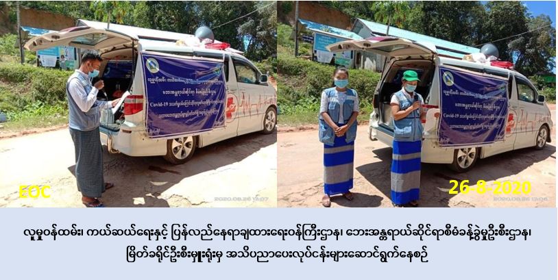လူမှုဝန်ထမ်း၊ ကယ်ဆယ်ရေးနှင့် ပြန်လည်နေရာချထားရေးဝန်ကြီးဌာန၊ ဘေးအန္တရာယ်ဆိုင်ရာ စီမံခန့်ခွဲမှုဦးစီးဌာန၊ မြိတ်ခရိုင်ဦးစီးမှူးရုံးမှ တာဝန်ရှိသူများသည် (၂၆-၈-၂၀၂၀)ရက်နေ့တွင် မြိတ်သံသရာအေးလူမူအထောက်အကူပြုပရဟိတအသင်းနှင့်ပူးပေါင်း၍ သက္ကယ်ထီး၊ မရင်းငယ်၊ မင်းသန်းကျးရွာတို့တွင် COVID-19 ကူးစက်ရောဂါနှင့်ပတ်သက်၍ အများပြည်သူသိရှိလိုက်နာ နိုင်ရန် ကျန်းမာရေးနှင့် အားကစားဝန်ကြီးဌာနမှ ထုတ်ပြန်ထားသော အသိပေးကြေငြာချက် များနှင့် မိုးကြိုးဘေး၊ ရေဘေး၊ လေပြင်းဘေး ဆိုင်ရာ ဆောင်ရန်/ရှောင်ရန်များနှင့်ပတ်သက်၍ အသိပညာပေးခြင်းများ ဆောင်ရွက်ခဲ့ပါကြောင်း သတင်းရရှိပါသည်။