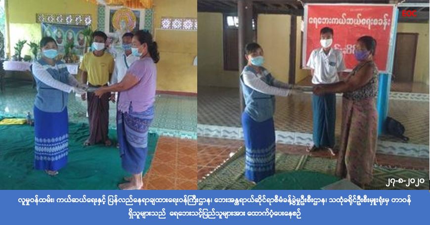 လူမှုဝန်ထမ်း၊ ကယ်ဆယ်ရေးနှင့် ပြန်လည်နေရာချထားရေးဝန်ကြီးဌာန၊ ဘေးအန္တရာယ်ဆိုင်ရာစီမံခန့်ခွဲမှုဦးစီးဌာန၊ သထုံခရိုင်ဦးစီးမှူးရုံးမှ တာဝန်ရှိသူများသည် (၂၆-၈-၂၀၂၀)ရက်နေ့နှင့် (၂၇-၈-၂၀၂၀) ရက်နေ့(၀၉:၀၀) နာရီအချိန် ခန့်၌ မွန်ပြည်နယ် သထုံခရိုင်၊ သထုံမြို့နယ်၊ ဒူးရင်းဆိပ်ကျေးရွာအုပ်စုအတွင်း ဒုံသမိမြစ်ရေမြင့်တက်လာမှုကြောင့် ရေဝင်ရောက်ခဲ့သည့် အိမ်ခြေ(၁၅)စု၊ အိမ်ထောင်စု(၁၅)စုတို့မှ လူဦးရေ(၈၂)ဦးတို့အတွက် (၇)ရက်စာ ဆန်ရိက္ခာဖိုး ထောက်ပံ့ငွေ (၁၇၂,၂၀ဝ) ကျပ်တို့ကို (၂၇-၈-၂၀၂၀)ရက်နေ့ (၁၅:၀၀)နာရီအချိန် ဒူးရင်းဆိပ်ကျေးရွာရှိ ရွာလယ် ဓမ္မာရုံနှင့် တပ်ဦးဘုန်းကြီးကျောင်းတို့၌ ဘေးသင့်ပြည်သူများထံ လက်ဝယ်အရောက် သွားရောက်ထောက်ပံ့ ပေးအပ်ခဲ့ကြောင်း သိရှိရပါသည်။