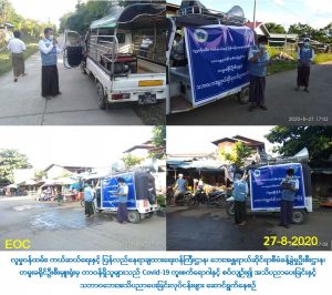 လူမှုဝန်ထမ်း၊ ကယ်ဆယ်ရေးနှင့် ပြန်လည်နေရာချထားရေးဝန်ကြီးဌာန၊ ဘေးအန္တရာယ် ဆိုင်ရာစီမံခန့်ခွဲမှုဦးစီးဌာန၊ တမူးခရိုင်းစီးမှူးရုံးမှ တာဝန်ရှိသူများသည် (၂၇-၈-၂၀၂၀) ရက်နေ့တွင် တမူးမြို့၊ စော်ဘွားအင်းရပ်ကွက်၊ စန္ဒကူးရပ်ကွက်တို့တွင် (Covid-19) အသက်ရှူလမ်းကြောင်းဆိုင်ရာရောဂါနှင့် ပတ်သက်၍ အများပြည်သူများသိရှိလိုက်နာနိုင်ရန် ကျန်းမာရေးနှင့် အားကစားဝန်ကြီးဌာနမှ ထုတ်ပြန်ထားသော အသိပေးကြေငြာချက်များကို နှိုးဆော်အသိပေးခဲ့ကြောင်း သတင်းရရှိ ပါသည်။