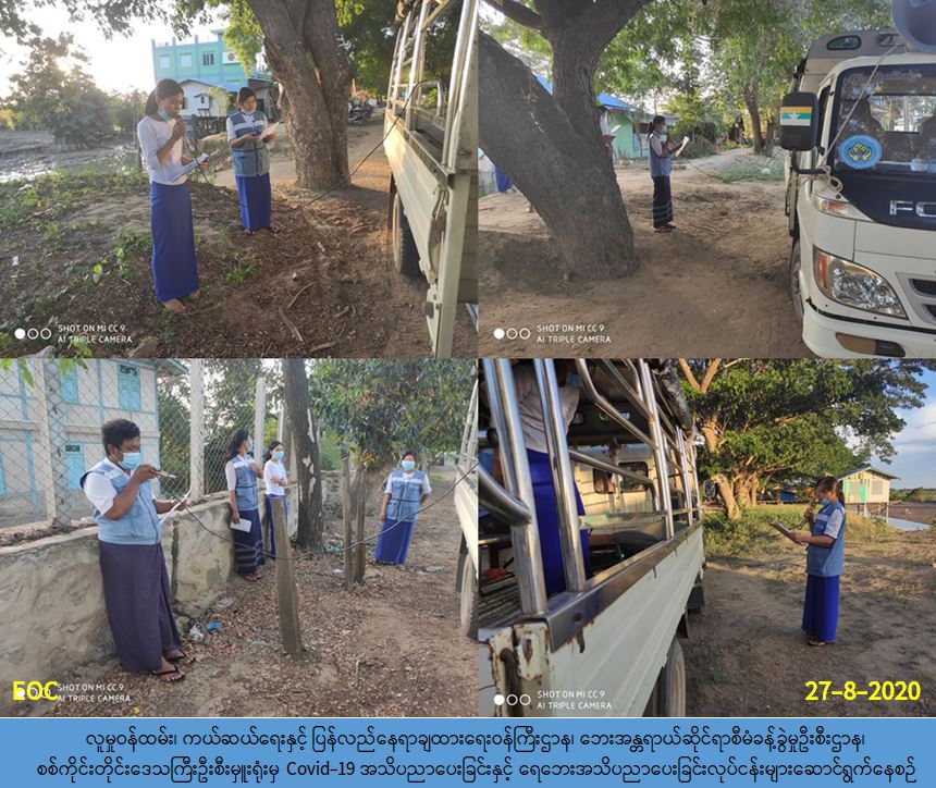 လူမှုဝန်ထမ်း၊ ကယ်ဆယ်ရေးနှင့် ပြန်လည်နေရာချထားရေးဝန်ကြီးဌာန၊ ဘေးအန္တရာယ်ဆိုင်ရာ စီမံခန့်ခွဲမှုဦးစီးဌာန၊ (၂၇-၈-၂၀၂၀) ရက်နေ့တွင် စစ်ကိုင်းတိုင်းဒေသကြီးဦးမှူးရုံးမှ တာဝန်ရှိသူ များသည် မုံရွာမြို့နယ်အတွင်းရှိ ရွှေဒါးကျကျေးရွာ၊ ကျီကုန်းကျေးရွာ၊ ခင်မွန်ကျေးရွာ၊ မြေနဲ ကျေးရွာ၊ ဘုမ္မနိုးကျေးရွာများရှိ မိဘပြည်သူများအား COVID-19 အသိပညာပေးခြင်း၊ ရေဘေး အန္တရာယ်အသိပညာပေးခြင်းများ ပြုလုပ်ခဲ့ပါကြောင်း သတင်းရရှိပါသည်။