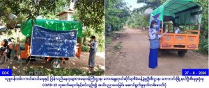 လူမှုဝန်ထမ်း၊ ကယ်ဆယ်ရေးနှင့် ပြန်လည်နေရာချထားရေး ဝန်ကြီးဌာန၊ ဘေးအန္တရာယ်ဆိုင်ရာစီမံခန့်ခွဲမှုဦးစီးဌာန၊ ကောလင်း မြို့နယ်ဦးစီးမှူးရုံးမှ တာဝန်ရှိသူများသည် (၂၇.၈.၂၀၂၀) ရက်နေ့တွင် ကောလင်းမြို့နယ်၊ အောင်းကုန်း၊ အင်ကပင်၊ သဲကော၊ ရွာဟောင်းကျေးရွာများရှိ ပြည်သူများသို့ Covid-19 ကူးစက်ရောဂါနှင့်စပ်လျဉ်း၍ ဆောင်ရန်၊ ရှောင်ရန်များကို လှည့်လည်၍ အသိပေးကြေညာခြင်းများ ဆောင်ရွက်ခဲ့ပါကြောင်း သတင်းရရှိပါသည်။