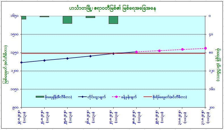 ယနေ့မြန်မာစံတော်ချိန် (၁၀:၃၀)နာရီအချိန် တိုင်းထွာချက်အရ ဧရာဝတီမြစ် ရေသည် ဟင်္သာတမြို့တွင် ပေဝက်ခန့် ယင်းမြို့၏ စိုးရိမ်ရေမှတ်အထက် ကျော် လွန်ရောက်ရှိနေပါသည်။ အဆိုပါမြစ်ရေသည် လက်ရှိရေမှတ်မှ နောက်(၃)ရက် အတွင်း (၁)ပေခန့် ဆက်လက်တက်လာနိုင်ကာ ယင်းမြို့၏ စိုးရိမ်ရေမှတ်အ ထက် ဆက်လက်တည်ရှိနိုင်ပါသည်။