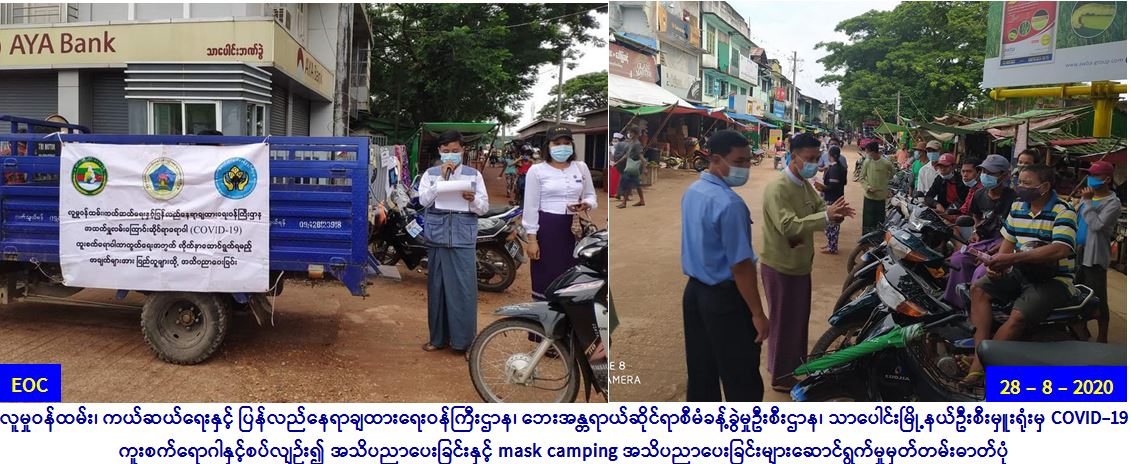 လူမှုဝန်ထမ်း၊ ကယ်ဆယ်ရေးနှင့် ပြန်လည်နေရာချထားရေးဝန်ကြီး ဌာန၊ သာပေါင်းမြို့နယ်ဦးစီးမှူးရုံးမှ တာဝန်ရှိသူများ သည် အထွေထွေအုပ်ချုပ်ရေးဦးစီးဌာန၊ world vision တို့နှင့်ပူးပေါင်း၍ (၂၈-၈-၂၀၂၀) ရက်နေ့ (၀၈:၀၀) နာရီအချိန်တွင် သာပေါင်းမြို့၊ ရပ်ကွက် (၁၊ ၂၊ ၃) နှင့် လှေကြီးတပ်ကျေးရွာအုပ်စုများရှိ ပြည်သူများအား အမိန့်ညွှန်ကြားချက်များ ကြေညာပေးခြင်း၊ mask camping အသိပညာပေးခြင်းနှင့် Covid-19 အသိပညာပေးခြင်း များဆောင်ရွက်ခဲ့ပါကြောင်း သတင်းရရှိပါသည်။