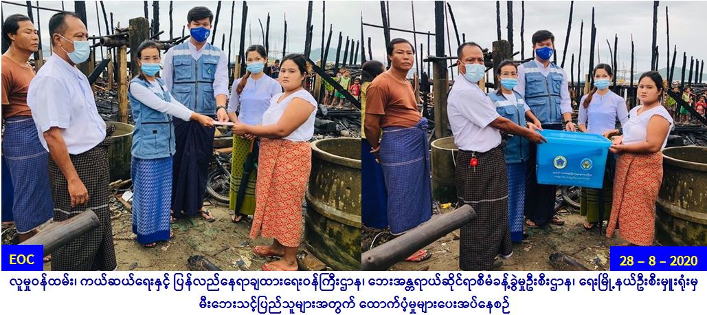 လူမှုဝန်ထမ်း၊ ကယ်ဆယ်ရေးနှင့် ပြန်လည်နေရာချထားရေး ဝန်ကြီးဌာန၊ ဘေးအန္တရာယ်ဆိုင်ရာစီမံခန့်ခွဲမှုဦးစီးဌာန၊ မော်လမြိုင် ခရိုင်၊ ရေးမြို့နယ်ဦးစီးမှူးရုံးမှ တာဝန်ရှိသူများသည် ရေးမြို့နယ်၊ အံဒင်ကျေးရွာအုပ်စု၊ ဓမင်းဆိပ်ကျေးရွာတွင် (၂၇.၈.၂၀၂၀) ရက်နေ့ (၁၈:၃၀) အချိန်တွင် မီးလောင်ကျွမ်းမှုကြောင့် လုံးဝပျက်စီးခဲ့သော အိမ်ခြေ(၁)လုံး၊ အိမ်ထောင်စု (၁) စုတို့အတွက် အိမ်ဆောက်ပစည်း ဖိုးငွေ ကျပ်(၂၀၀,၀၀ဝ/)တိတိ လူဦးရေ (၅) ဦး အတွက် ဆန်ရိက္ခာဖိုး (၇) ရက်စာထောက်ပံ့ငွေကျပ် (၁၀,၅၀ဝ/-) တိတိစုစုပေါင်း ထောက်ပံ့ငွေကျပ်(၂၁၀,၅၀ဝ/)တိတိတို့အား မွန်ပြည်နယ်ဦးစီးမှူးရုံး တို့မှလည်းကောင်း၊ ကယ်ဆယ်ရေးပစ္စည်း (၁၇)မျိုး (၁)အိမ်ထောင်စုတို့အား ရေးမြို့နယ်ဦးစီးမှူးရုံးမှလည်းကောင်း (၂၈-၈-၂၀၂၀) ရက်နေ့ (၁၆:၁၅) နာရီအချိန်တွင် အံဒင်အုပ်ချုပ်ရေးမှူးတို့နှင့်အတူ ပြည်သူများလက်ဝယ်အရောက် လွှဲပြောင်းထောက်ပံ့ပေးအပ်ခဲ့ပါ ကြောင်း သတင်းရရှိပါသည်။