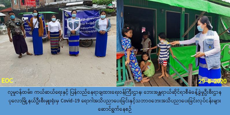 လူမှုဝန်ထမ်း၊ ကယ်ဆယ်ရေးနှင့် ပြန်လည်နေရာချထားရေးဝန်ကြီးဌာန၊ ဘေးအန္တရာယ်ဆိုင်ရာ စီမံခန့်ခွဲမှုဦးစီးဌာန၊ (၂၉-၈-၂၀၂၀) ရက်နေ့တွင် ပုလောမြို့နယ်ဦးစီးမှူးရုံးမှ တာဝန်ရှိသူများ သည် ပုလောမြို့နယ် ကျောက္ကာကျေးရွာစေတနာ့ဝန်ထမ်း ပရဟိတ အသင်းတို့ပူးပေါင်း၍ ကျောက္ကာ၊ ရာဇဂြိုလ်၊ ကော့ဒွေး၊ သကျက်ကမ်း ကျေးရွာတို့တွင် COVID-19 ကူးစက်ရောဂါ( ဒုတိယလှိုင်း) အသက်ရှူလမ်းကြောင်းဆိုင်ရာရောဂါနှင့်ပတ်သက်၍ အများပြည်သူသိရှိလိုက် နာနိုင်ရန် ကျန်းမာရေးနှင့် အားကစားဝန်ကြီးဌာနက ထုတ်ပြန်ထားသော အသိပေးကြေငြာချက် များနှင့် မိုးကြိုးဘေး၊ ရေဘေး၊ လေပြင်းဘေး ဆောင်ရန်ရှောင်ရန်များ အသိပညာပေးခြင်းအား ဆောင်ရွက်ပြီးဖြစ်ပါကြောင်းနှင့် လက်ကမ်းစာစောင်များဝေငှခြင်းတို့ဆောင်ရွက်ခဲ့ပါကြောင်း သတင်းရရှိပါသည်။