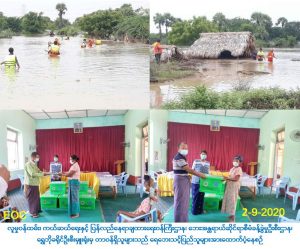 လူမှုဝန်ထမ်း၊ ကယ်ဆယ်ရေးနှင့် ပြန်လည်နေရာချထားရေးဝန်ကြီးဌာန၊ ဘေးအန္တရာယ် ဆိုင်ရာစီမံခန့်ခွဲမှုဦးစီးဌာန၊ ရွှေဘိုခရိုင်ဦးစီးမှူးရုံးမှ တာဝန်ရှိသူများသည် (၃၁-၈-၂၀၂၀) ရက်နေ့တွင် မိုးသည်းထန်စွာရွာသွန်းပြီး ဆူးတပ်ဆည်နှင့် နမောဆည်တို့မှ ရေလျှံမှုကြောင့် ရွှေဘိုမြို့နယ်၊ နမောကျေးရွာအုပ်စု၊ တဲကြီးကျေးရွာမှ ရေ၀င်နစ်မြှုပ်မှုများဖြစ်ပွားခဲ့သည့် အိမ်ခြေ (၈) လုံး၊ အိမ်ထောင်စု (၈) စုမှ လူဦးရေ (၃၃) ဦးအတွက် အိမ်ဆောက်ပစ္စည်းဖိုး ထောက်ပံ့ငွေ (၈၀၀,၀၀ဝိ/-) ကျပ်၊ ဆန်ရိက္ခာဖိုးထောက်ပံ့ငွေ (၆၉,၃၀ဝိ/-) ကျပ်၊ စုစုပေါင်း (၈၆၉,၃၀ဝိ/-) ကျပ်နှင့် ကယ်ဆယ်ရေးပစ္စည်း (၁၇) မျိုး (၈) အိမ်ထောင်စာတို့ကို (၂-၉-၂၀၂၀) ရက်နေ့၊ (၁၁:၀၀) နာရီအချိန်တွင် မြို့နယ်အထွေထွေအုပ်ချုပ်ရေး ဦးစီးဌာနမှ တစ်ဆင့် ဘေးသင့်ပြည်သူများထံသို့ လက်ဝယ်အရောက် ထောက်ပံ့ပေးအပ်ခဲ့ကြောင်း သတင်းရရှိပါသည်။